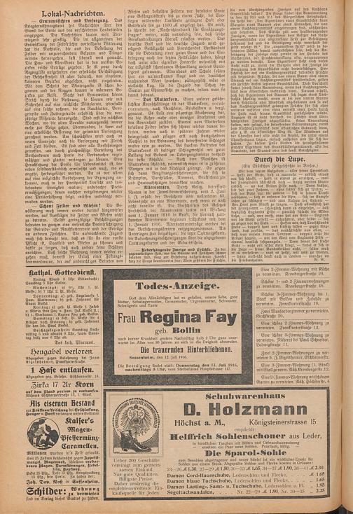 Regionale Zeitungen aus der Zeit des Ersten Weltkrieges