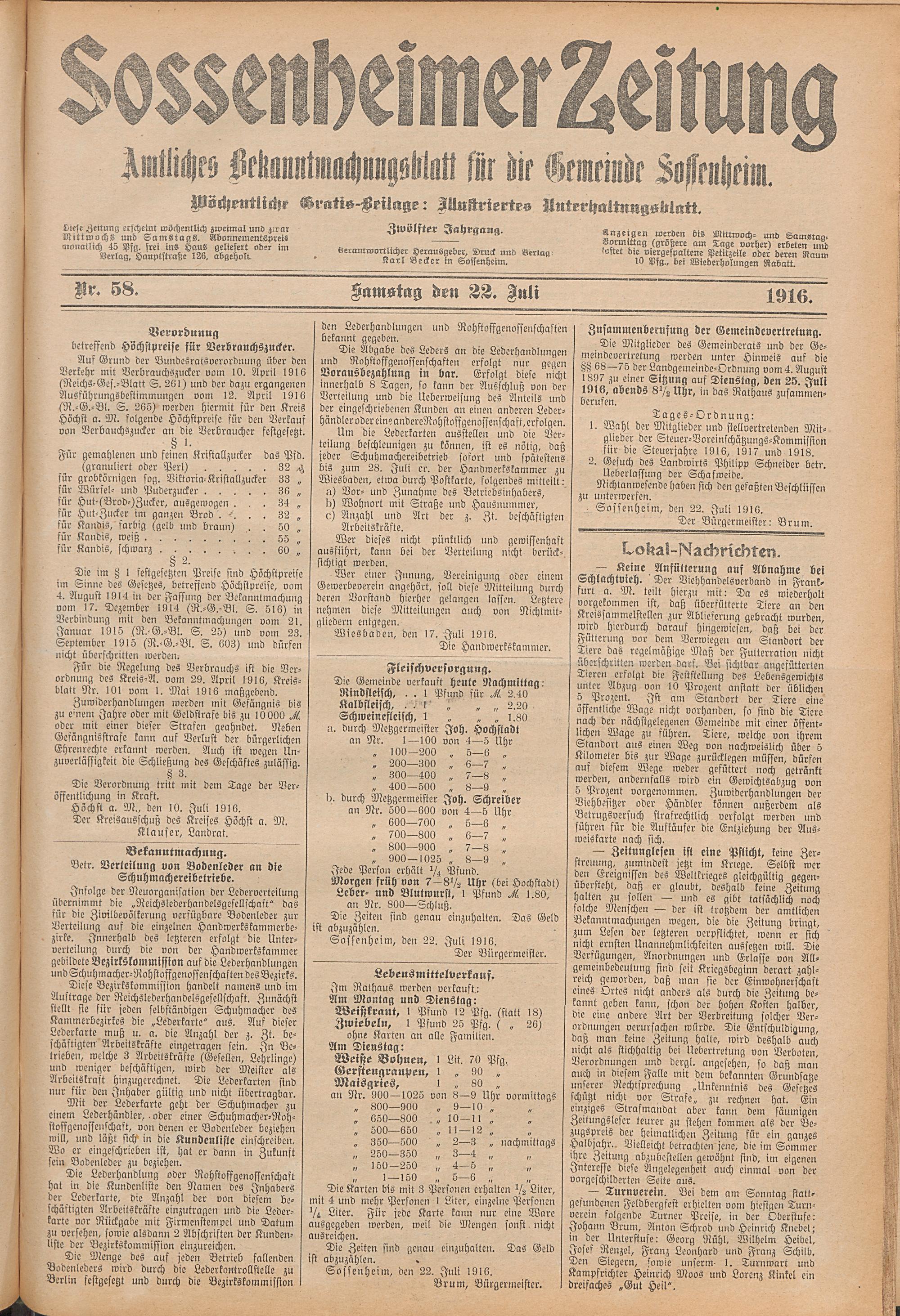 Sossenheimer Zeitung. 1906-1927