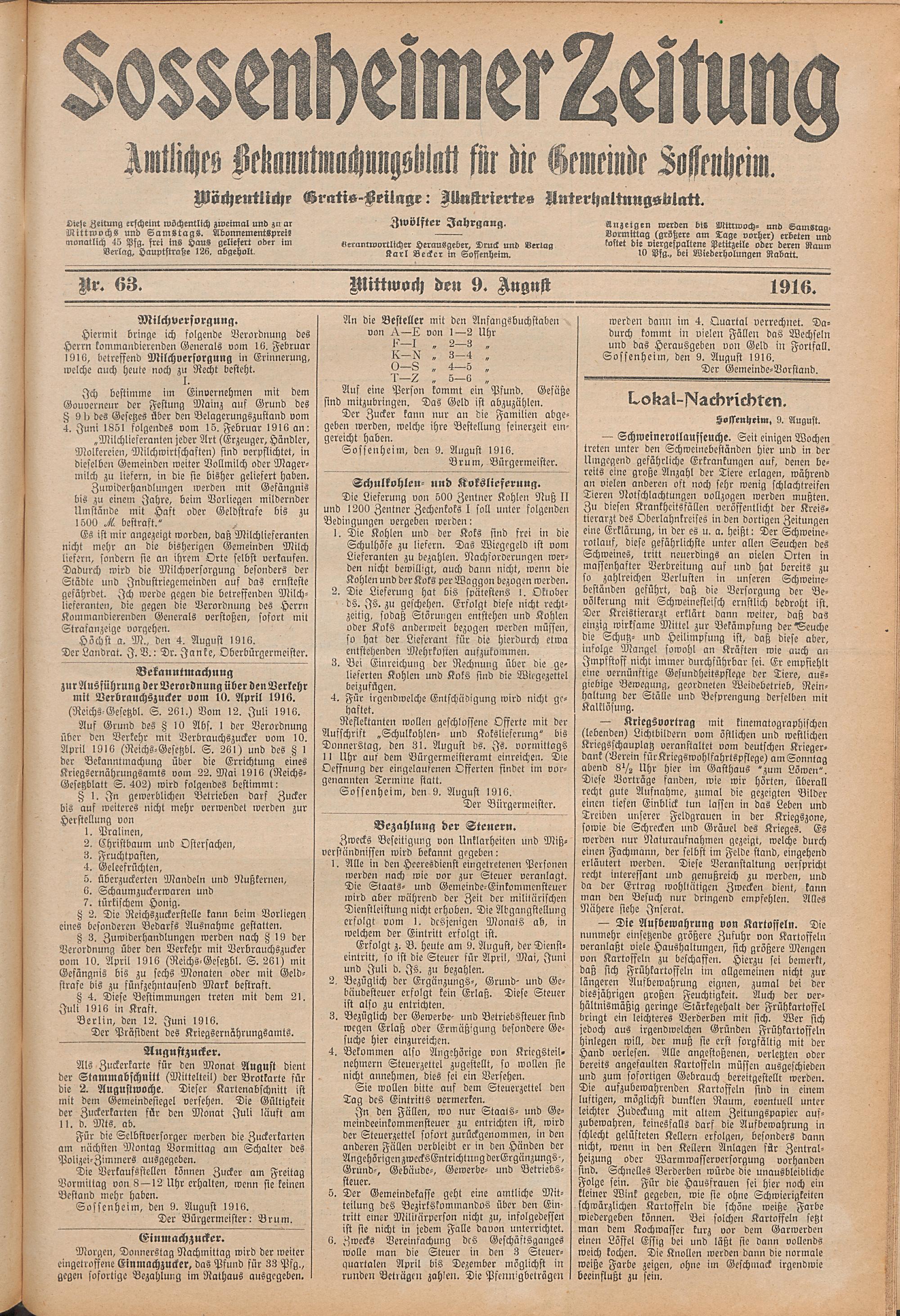 Sossenheimer Zeitung. 1906-1927