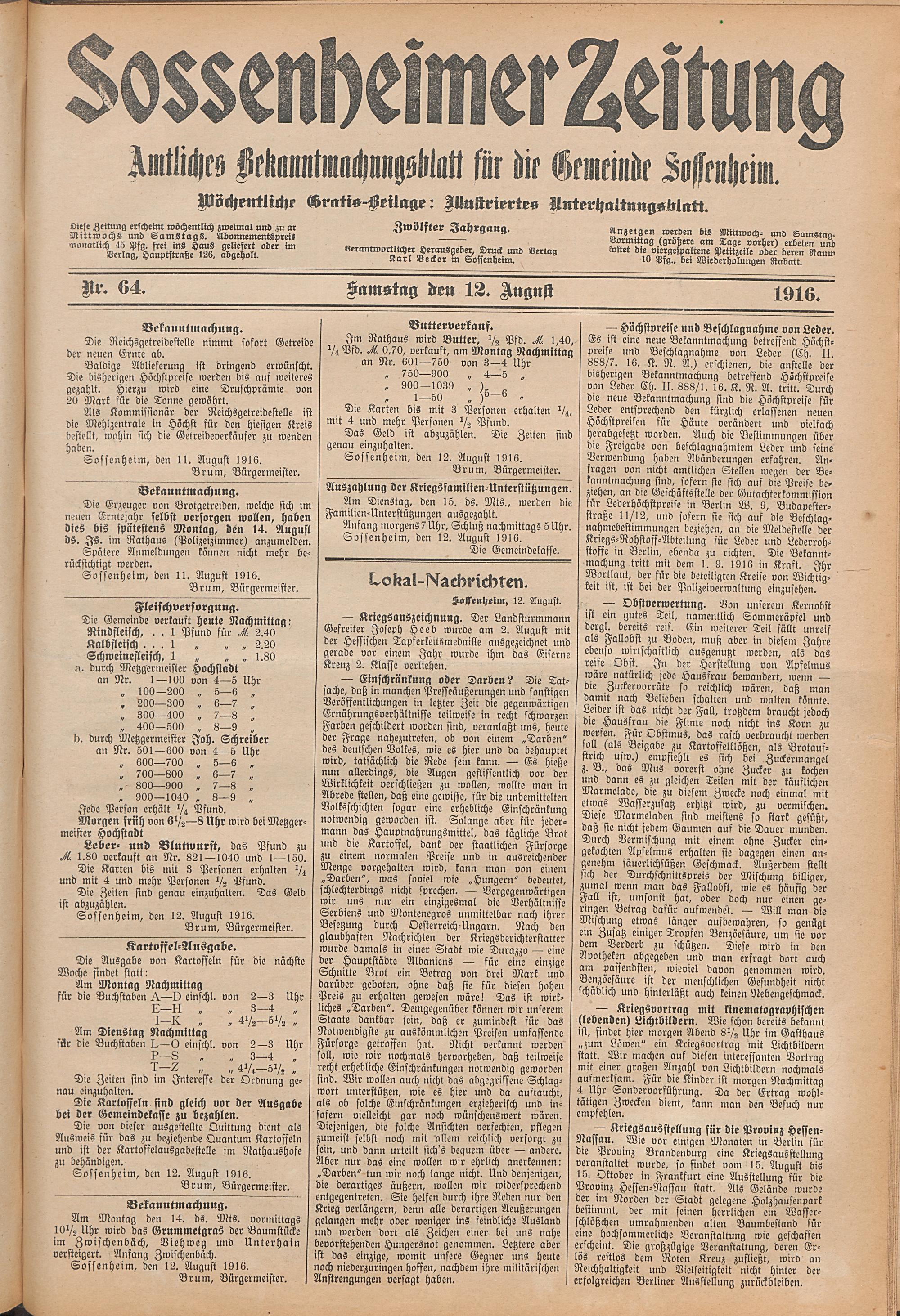 Regionale Zeitungen aus der Zeit des Ersten Weltkrieges