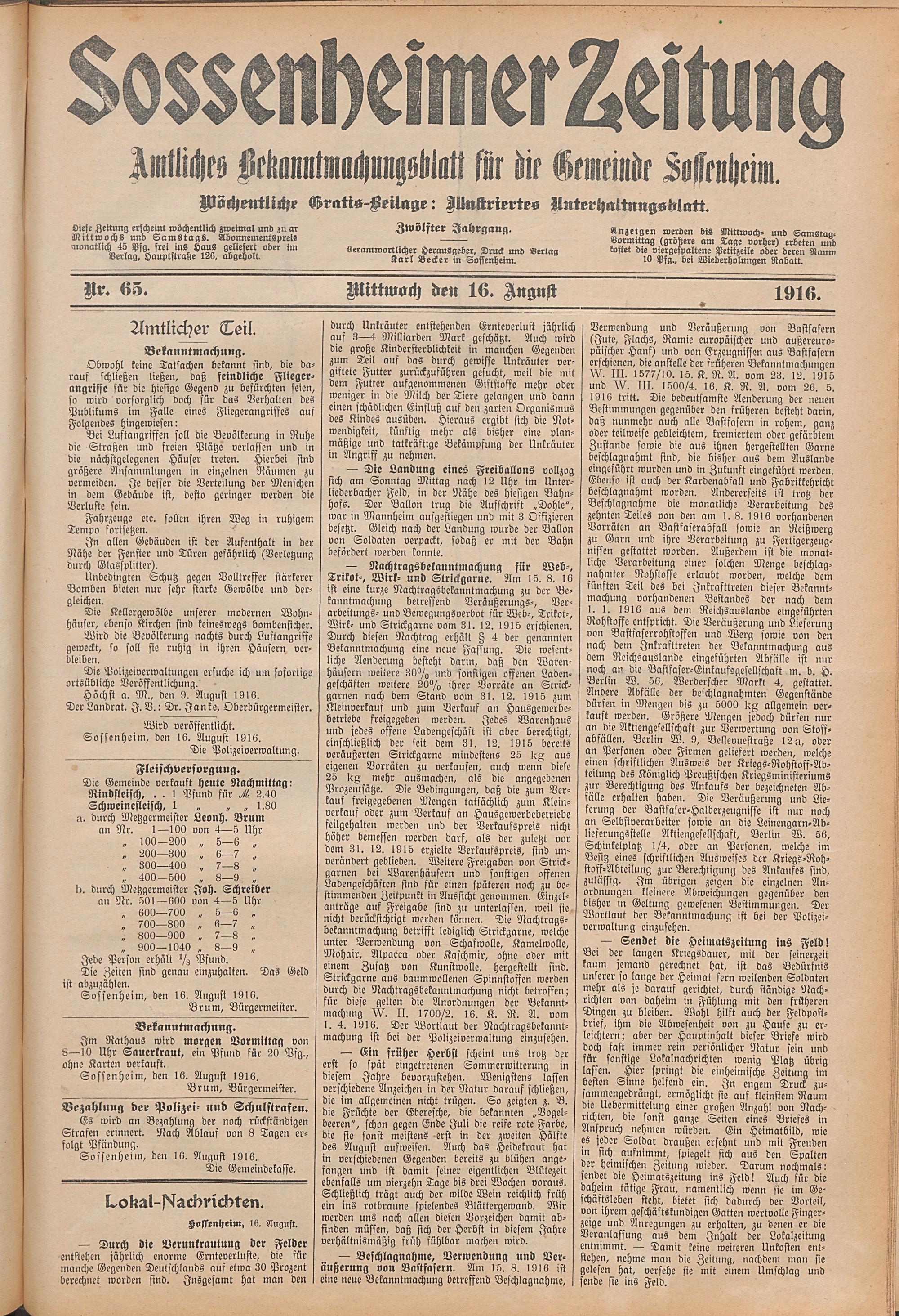 Regionale Zeitungen aus der Zeit des Ersten Weltkrieges