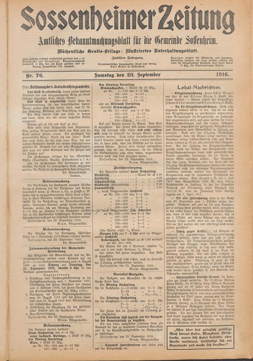 Regionale Zeitungen aus der Zeit des Ersten Weltkrieges