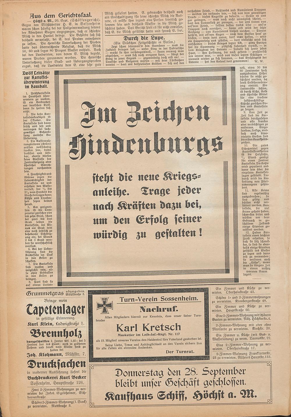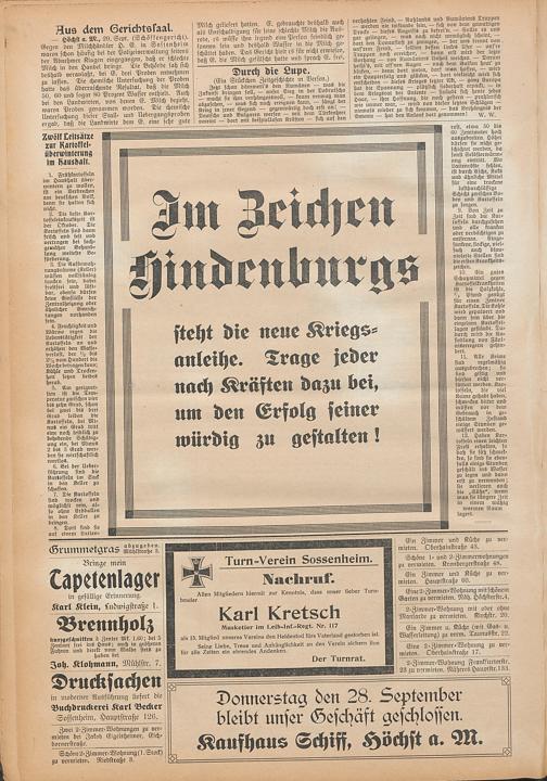 Regionale Zeitungen aus der Zeit des Ersten Weltkrieges