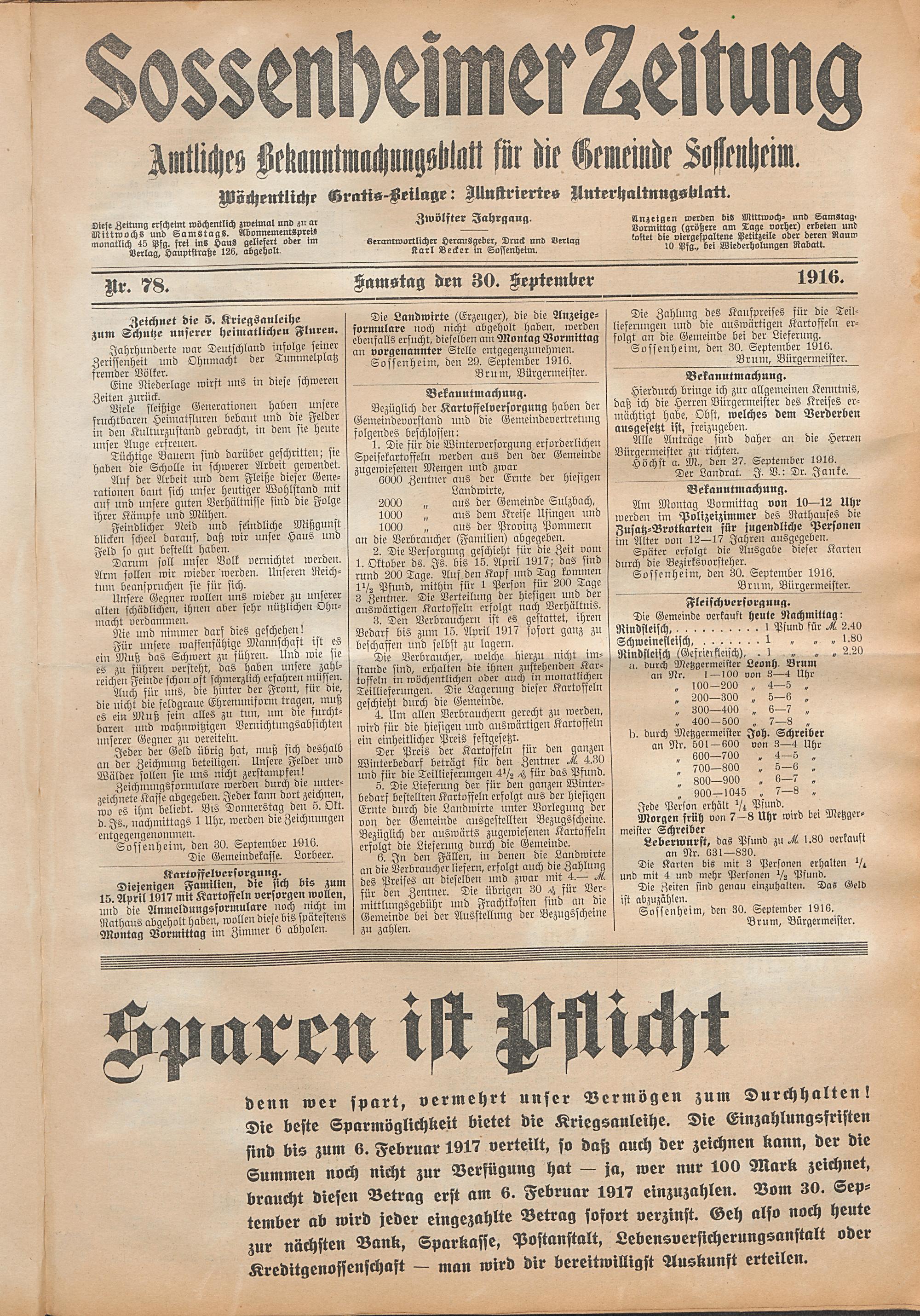 Sossenheimer Zeitung. 1906-1927