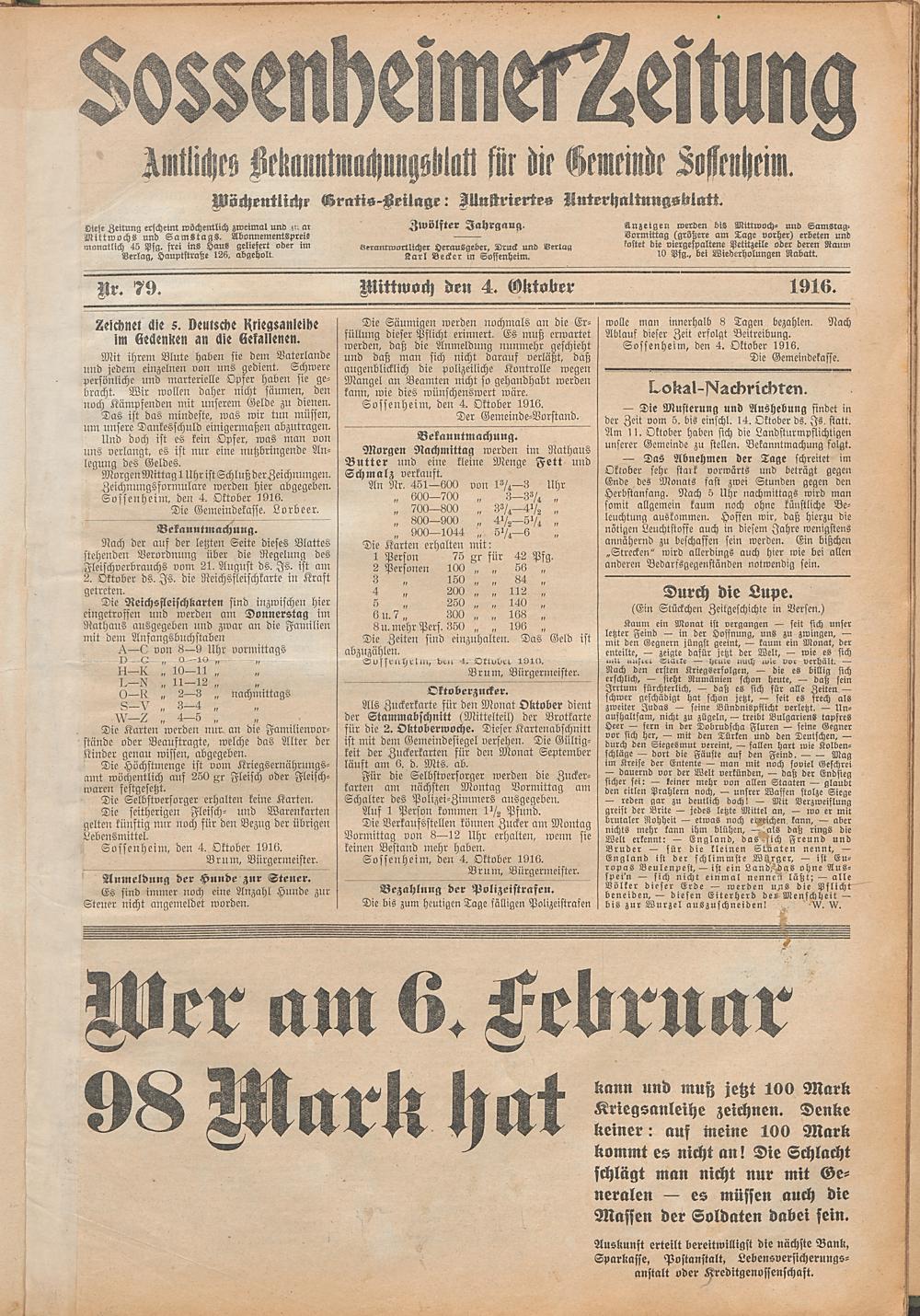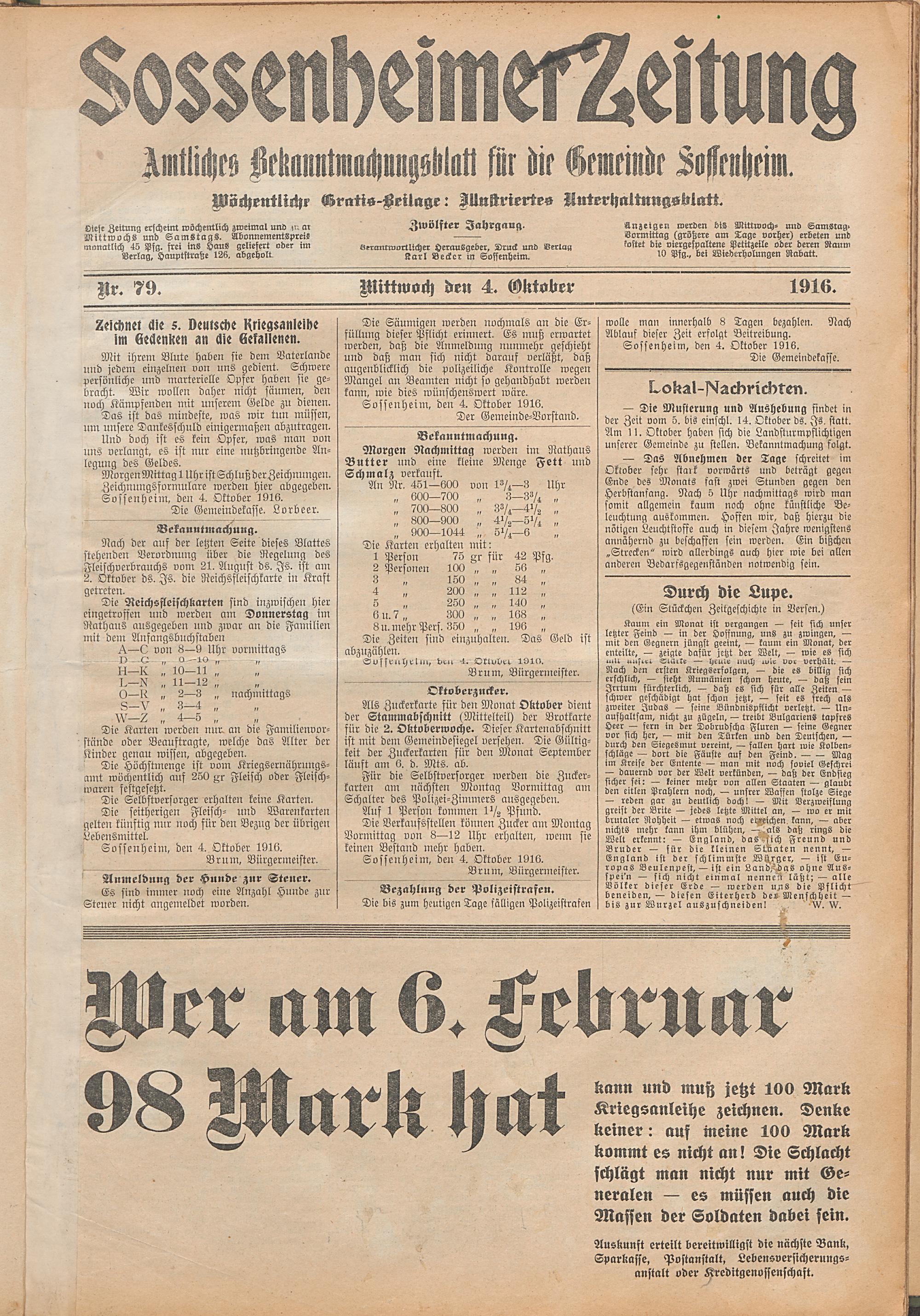 Regionale Zeitungen aus der Zeit des Ersten Weltkrieges
