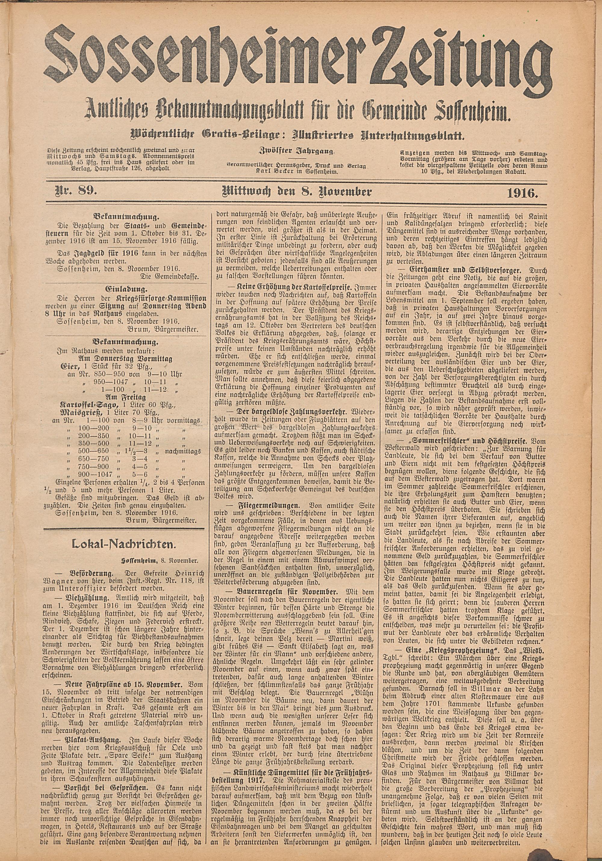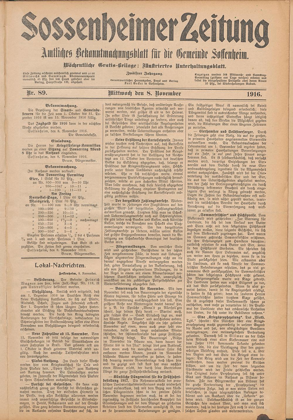 Regionale Zeitungen aus der Zeit des Ersten Weltkrieges