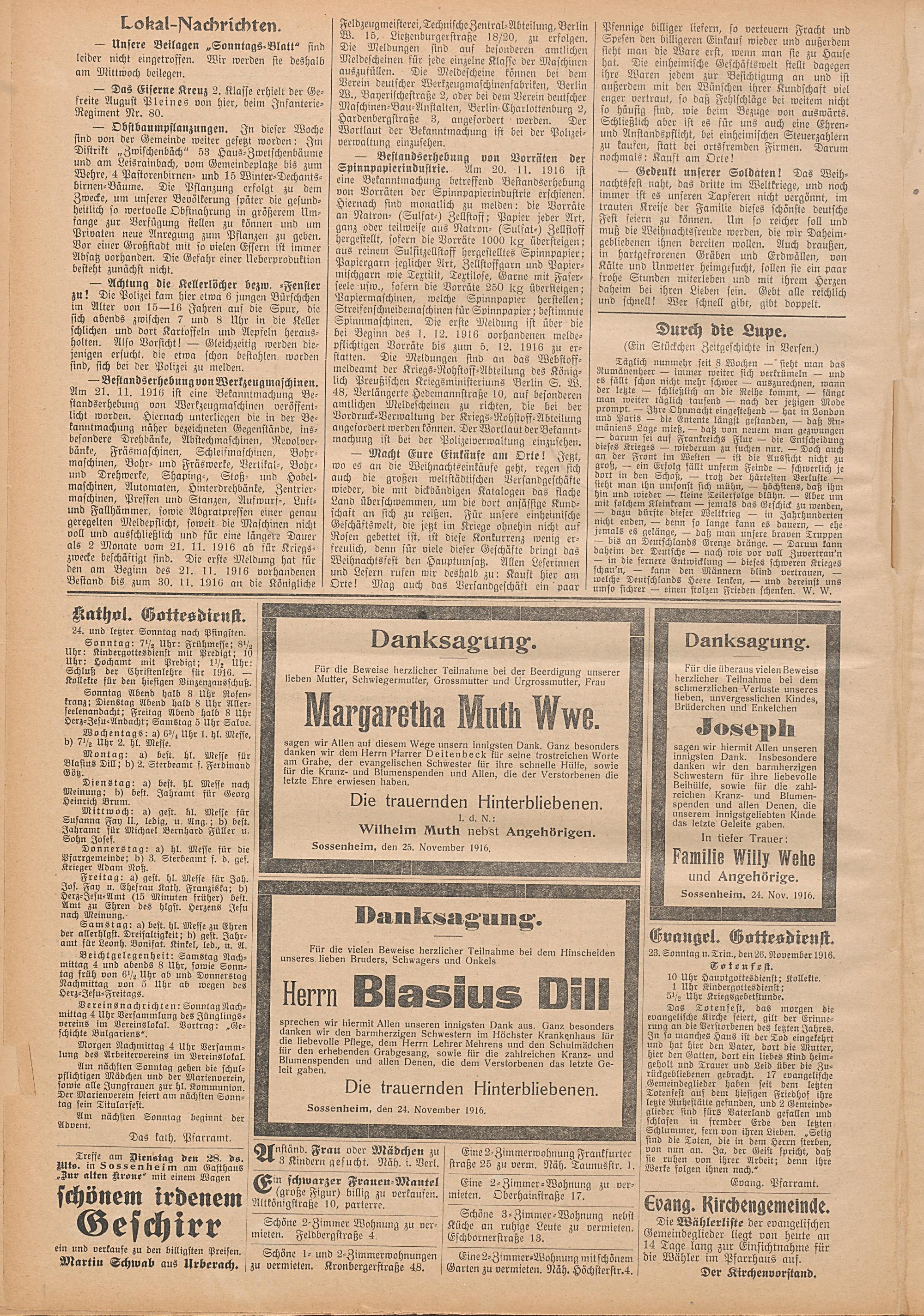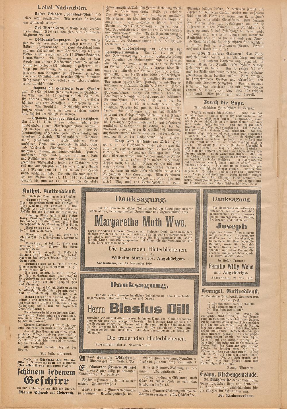 Regionale Zeitungen aus der Zeit des Ersten Weltkrieges