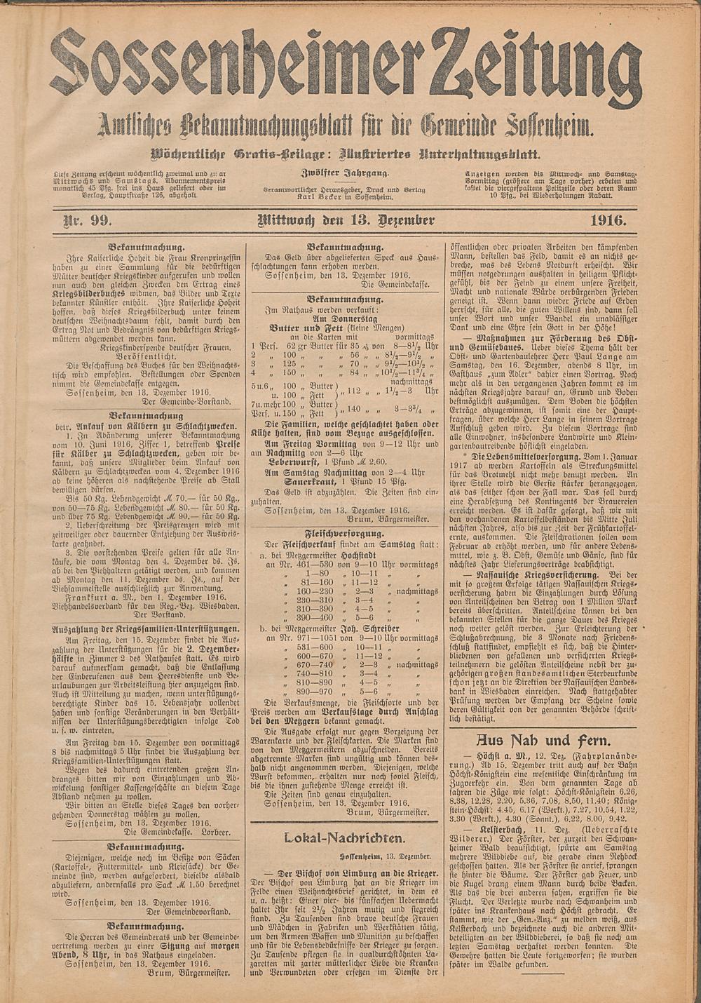Regionale Zeitungen aus der Zeit des Ersten Weltkrieges