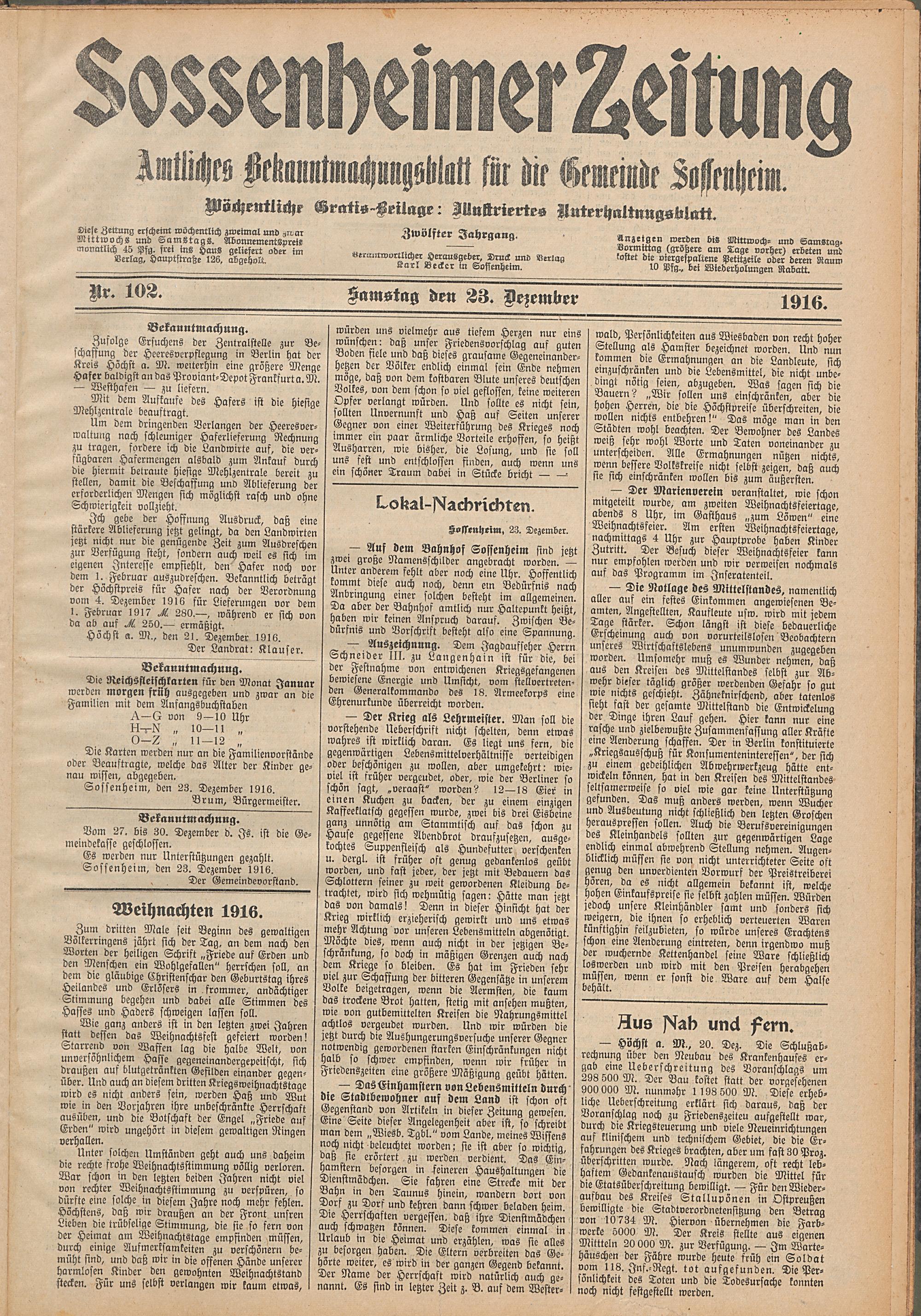 Sossenheimer Zeitung. 1906-1927