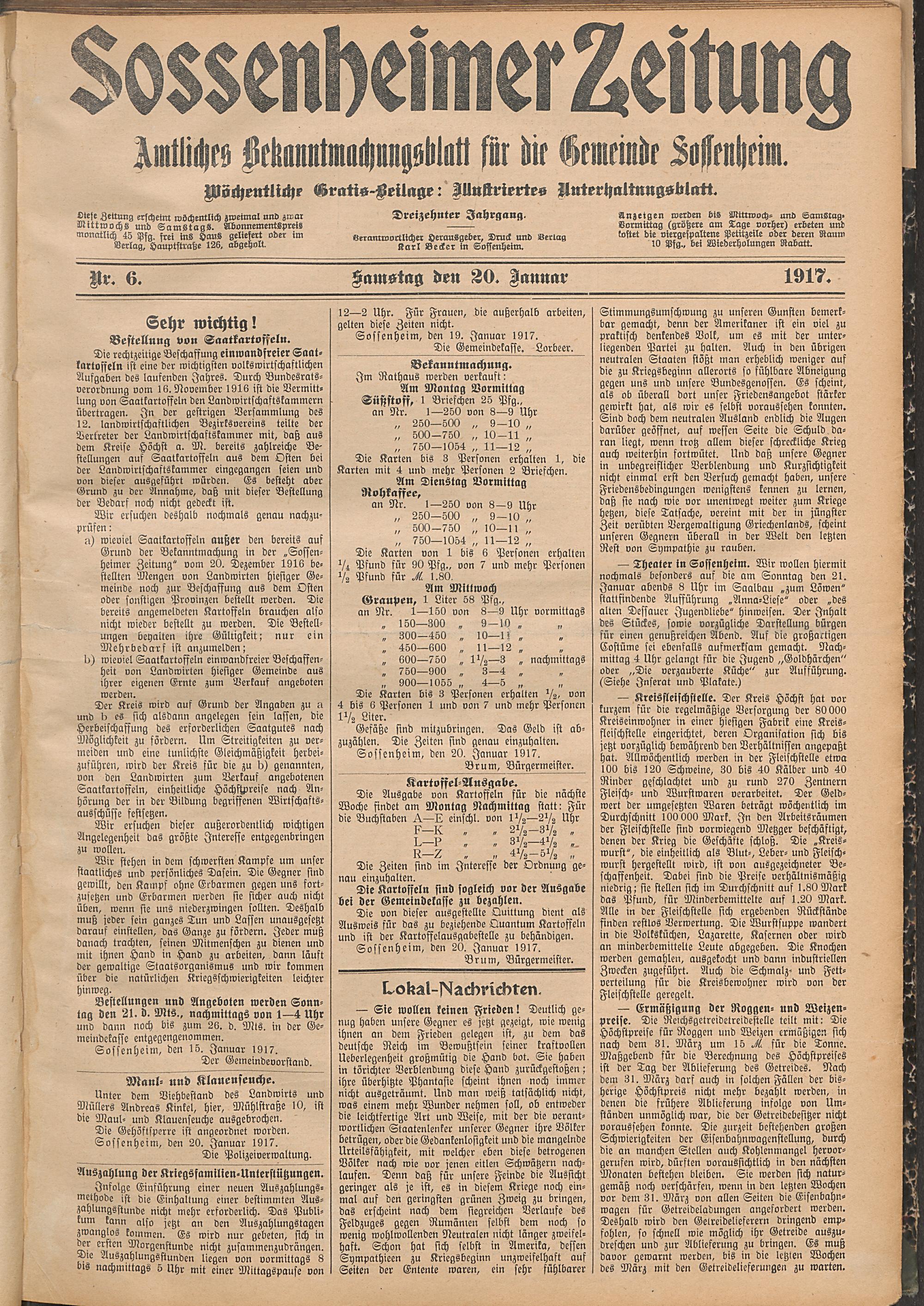 Sossenheimer Zeitung. 1906-1927