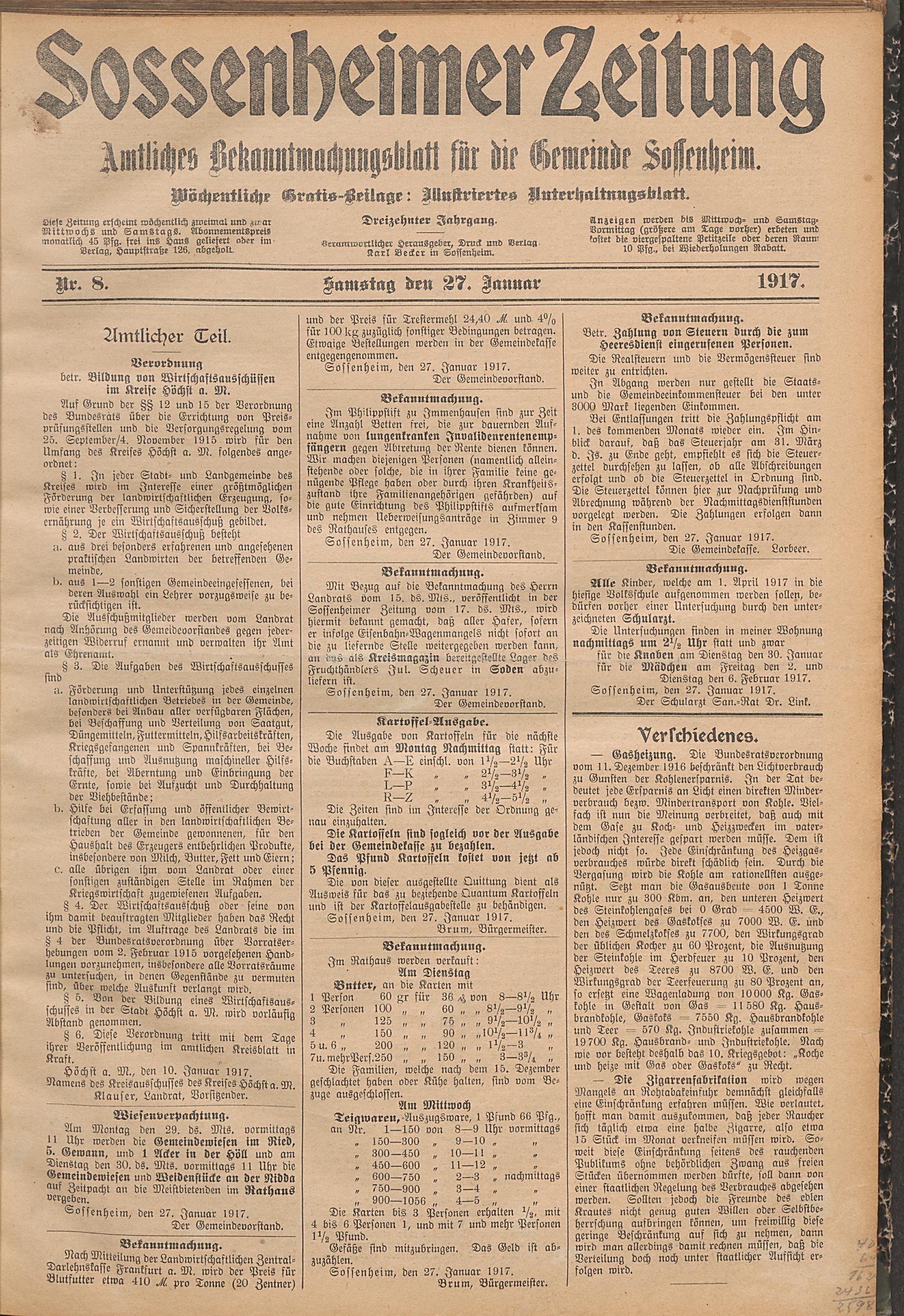Sossenheimer Zeitung. 1906-1927