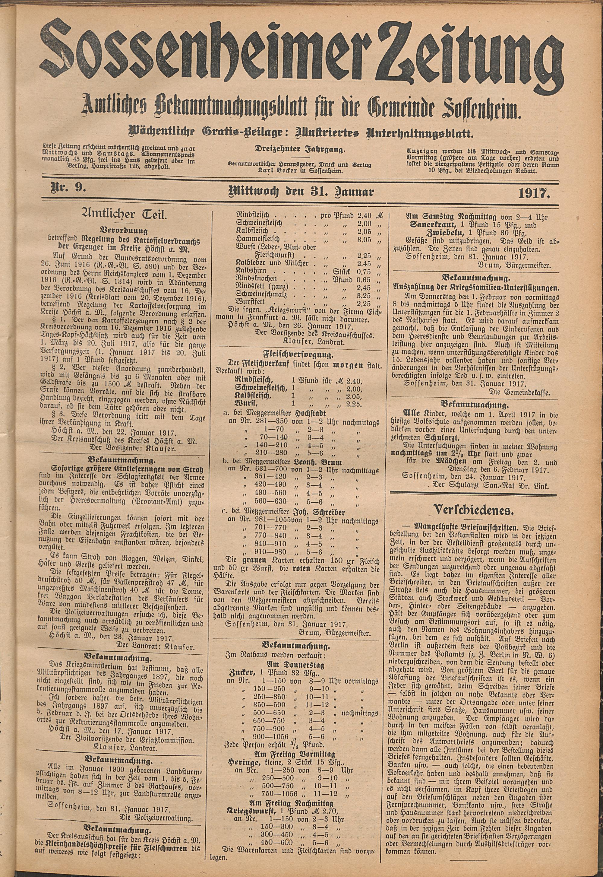 Sossenheimer Zeitung. 1906-1927