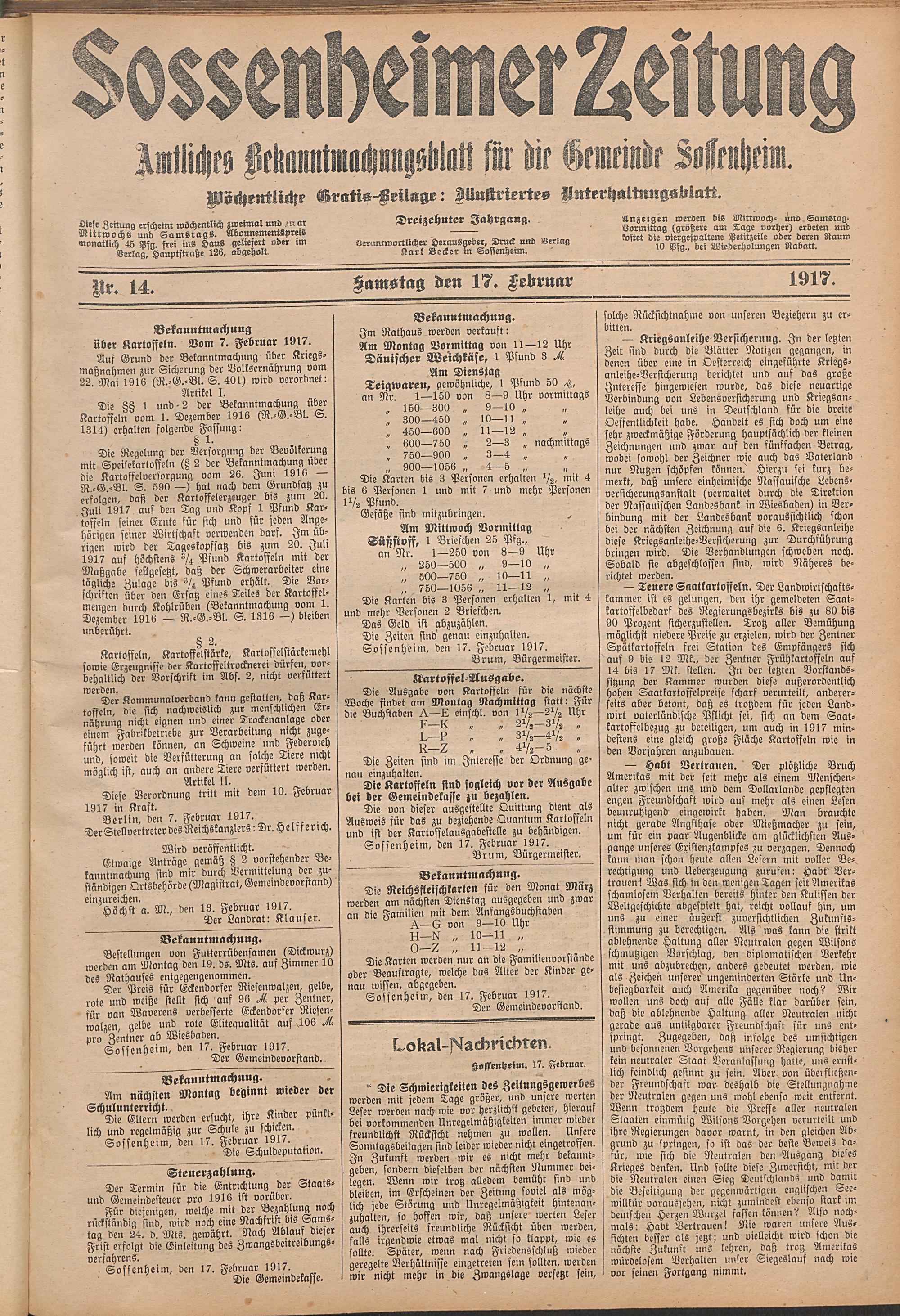 Sossenheimer Zeitung. 1906-1927