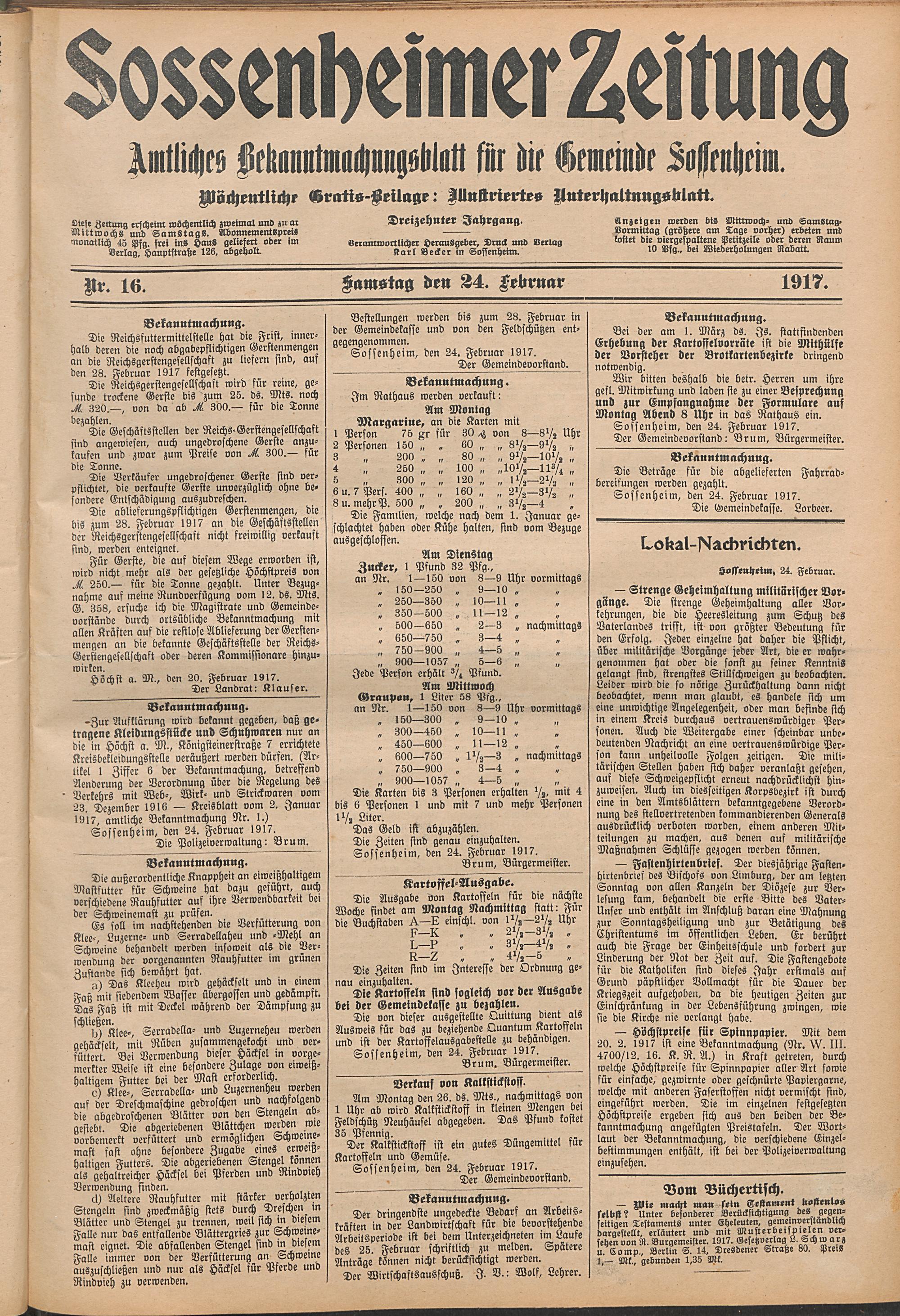 Regionale Zeitungen aus der Zeit des Ersten Weltkrieges