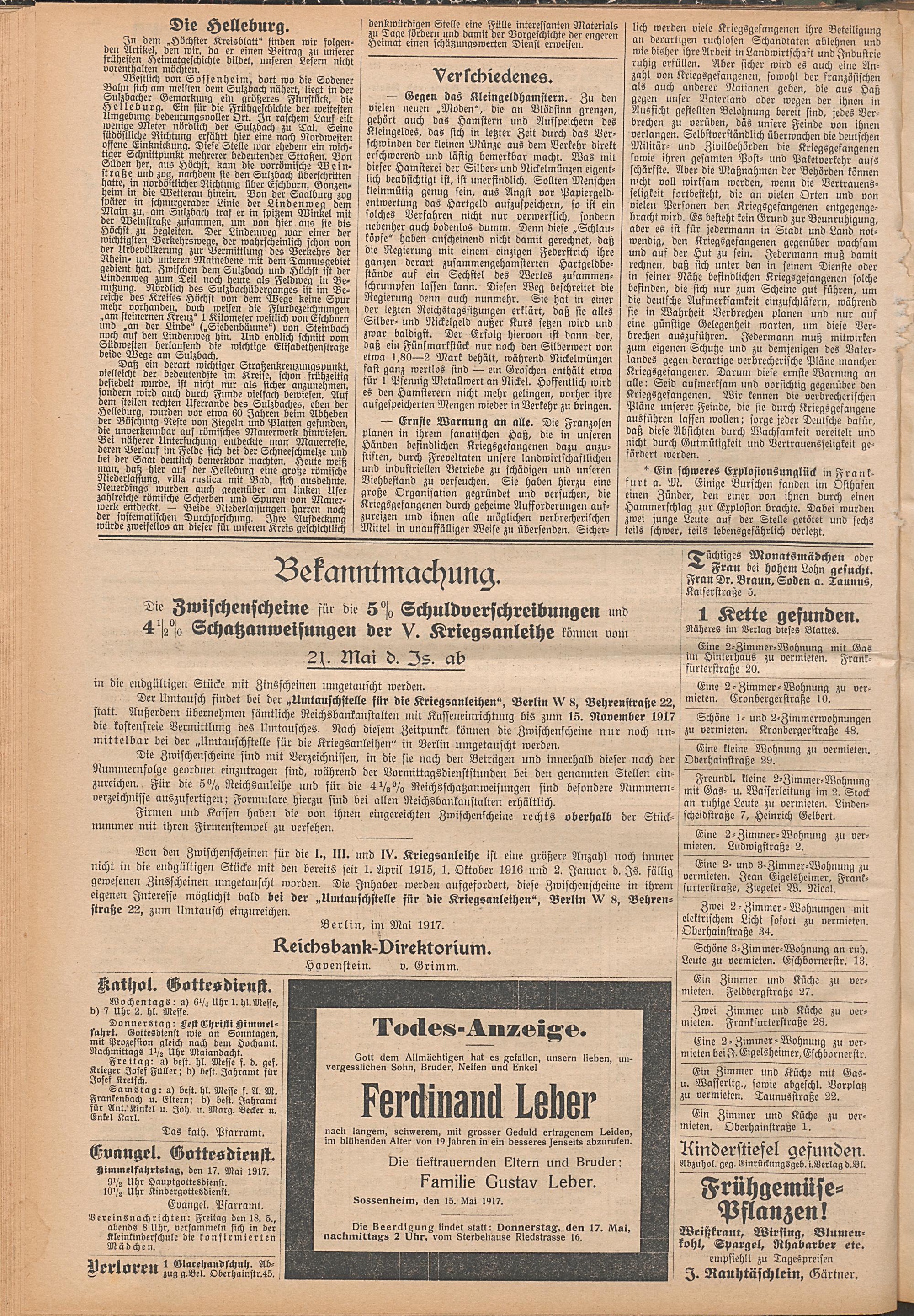 Regionale Zeitungen aus der Zeit des Ersten Weltkrieges