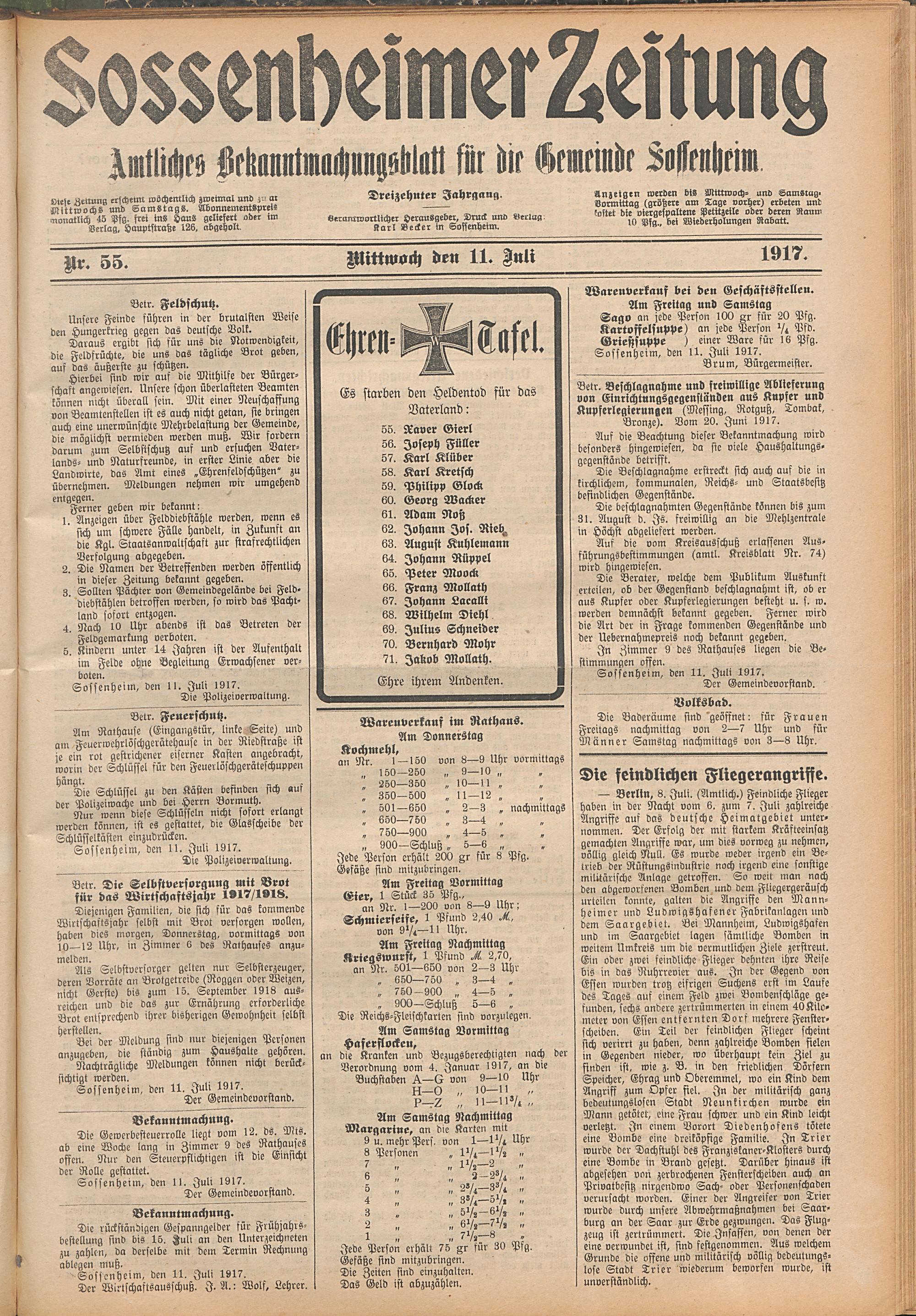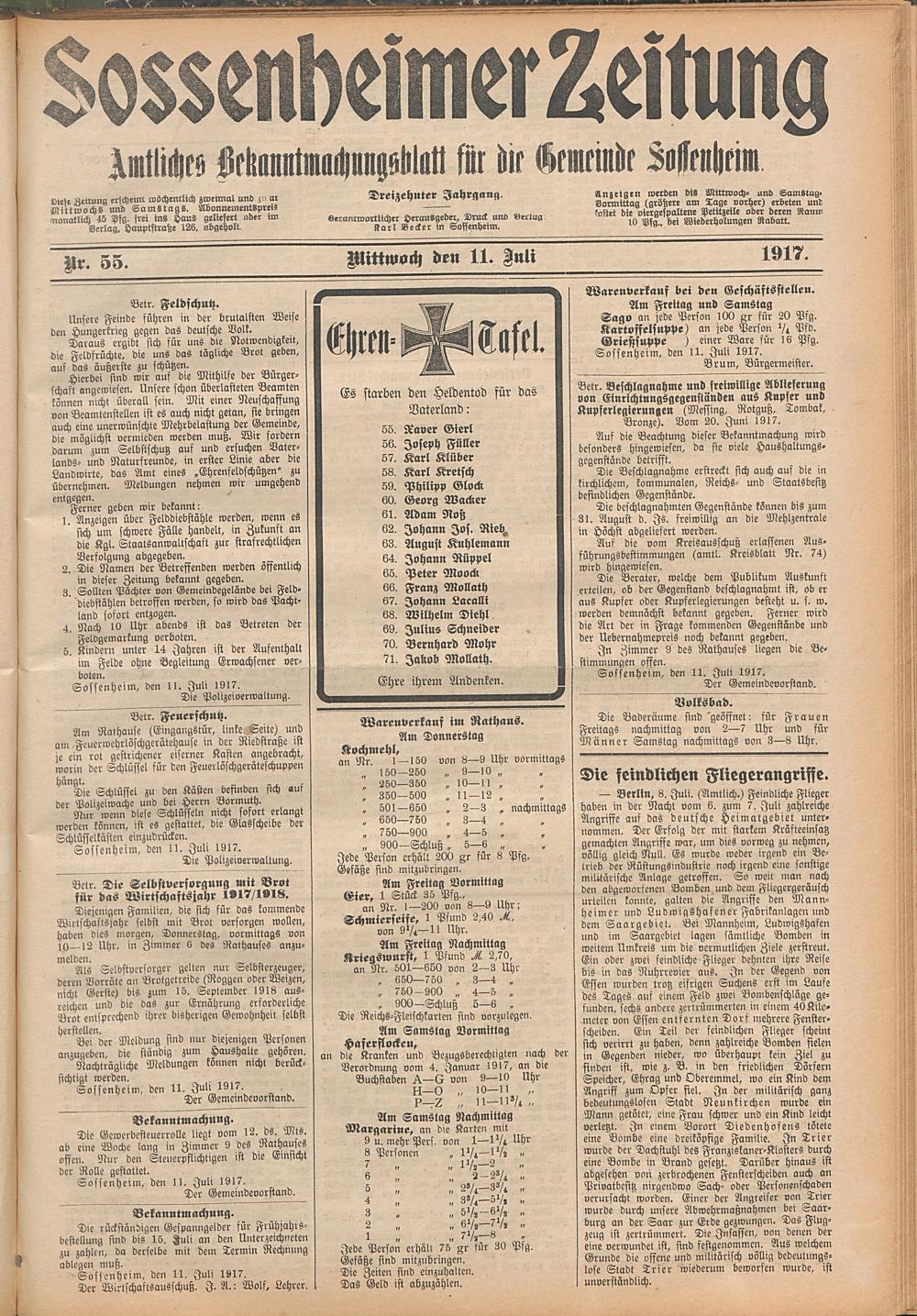 Regionale Zeitungen aus der Zeit des Ersten Weltkrieges