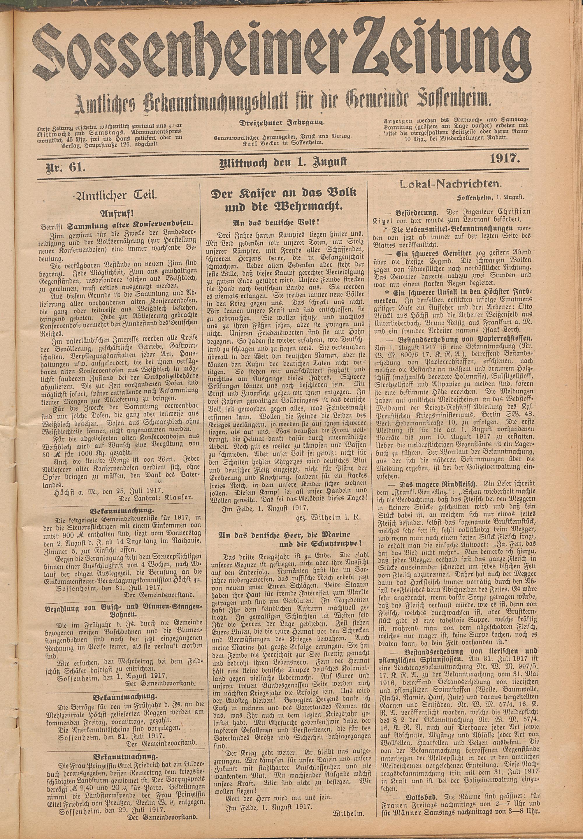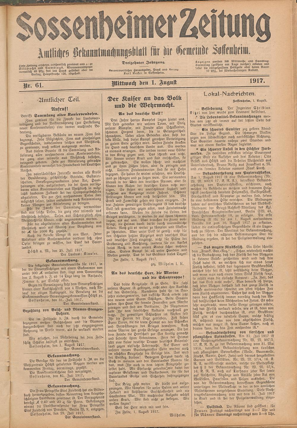 Sossenheimer Zeitung. 1906-1927
