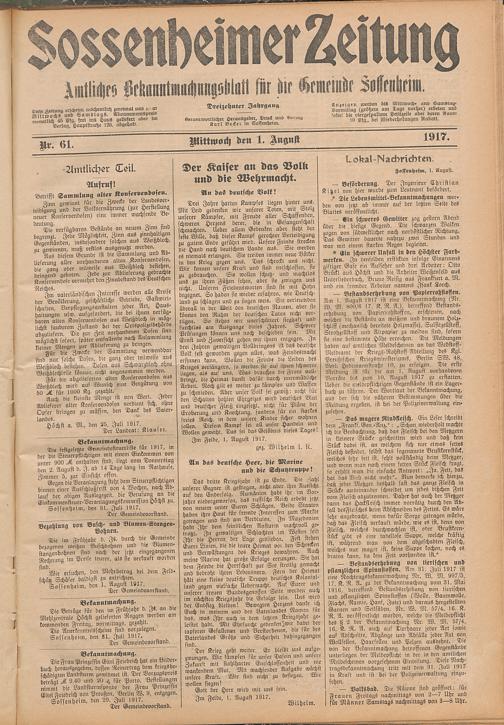 Regionale Zeitungen aus der Zeit des Ersten Weltkrieges