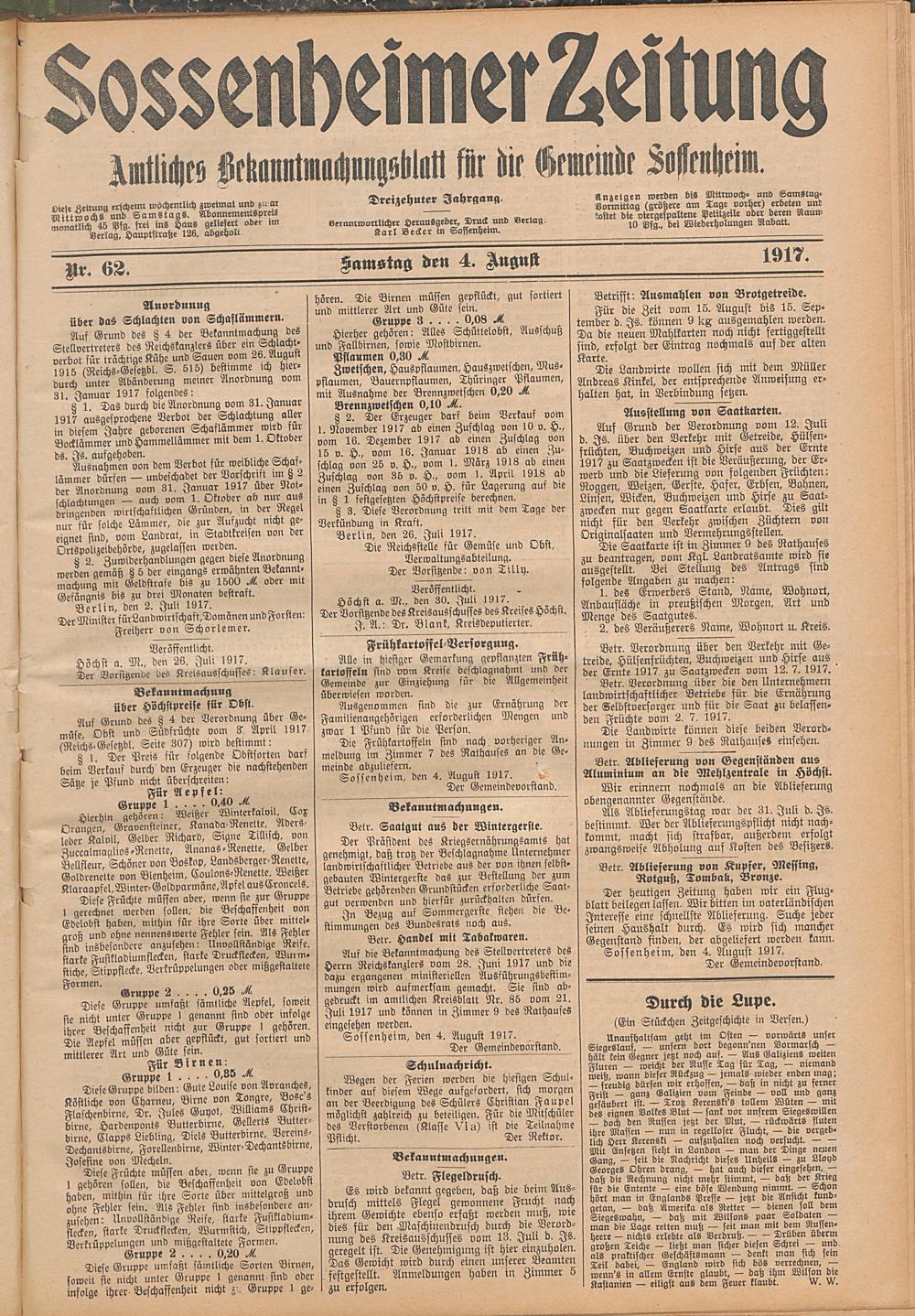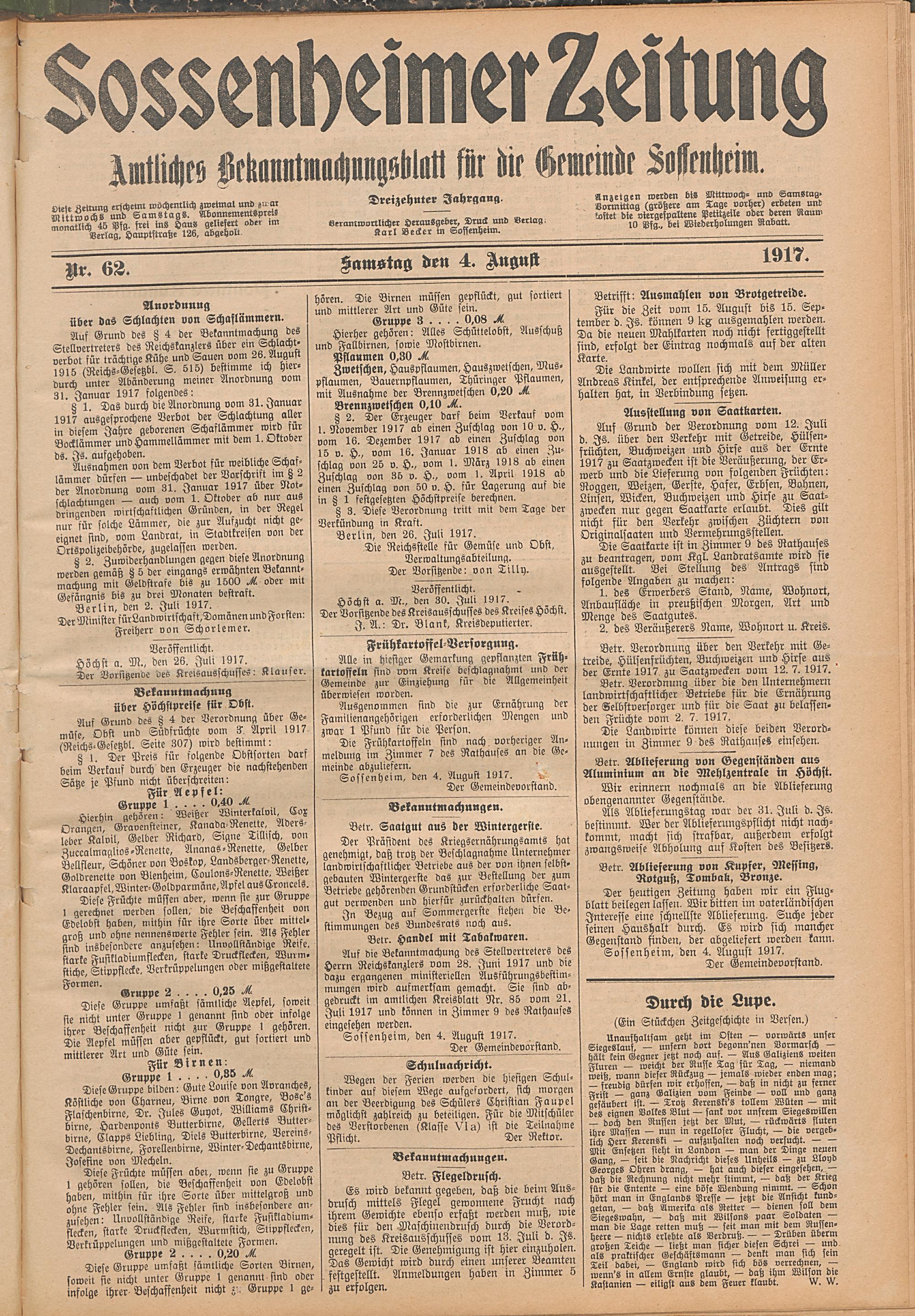 Regionale Zeitungen aus der Zeit des Ersten Weltkrieges