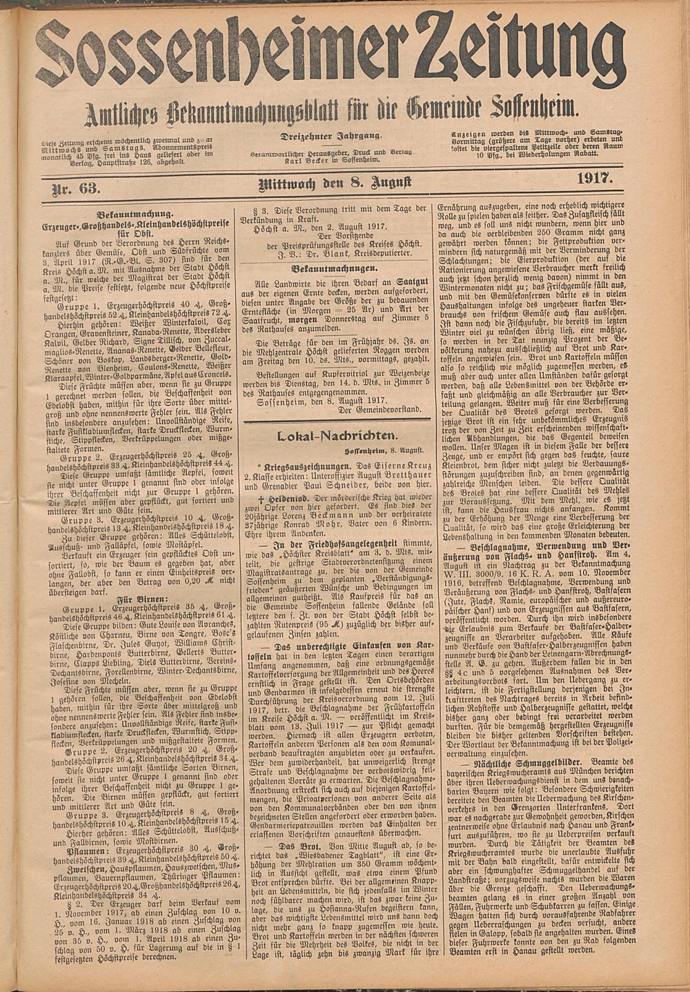 Regionale Zeitungen aus der Zeit des Ersten Weltkrieges