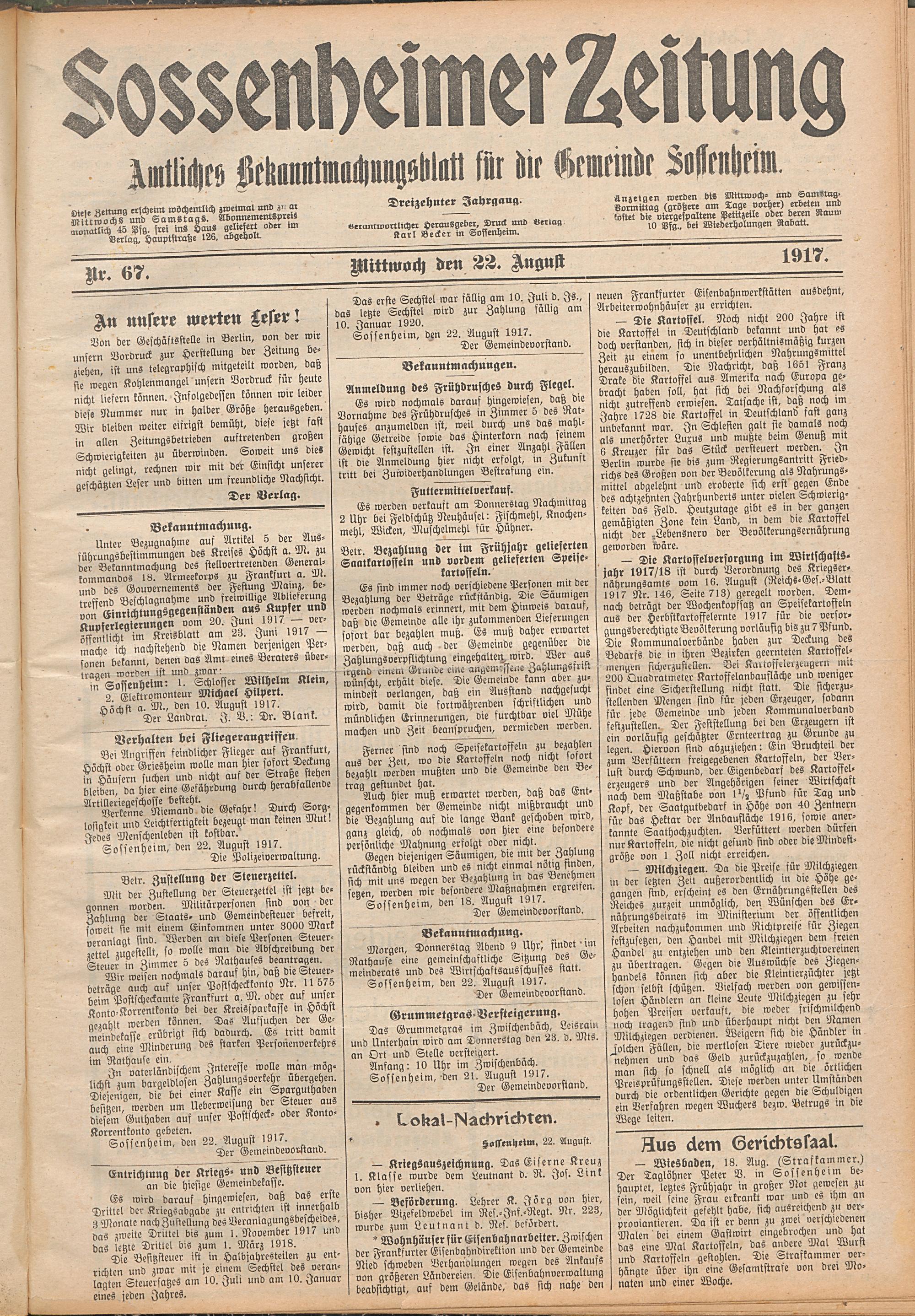 Regionale Zeitungen aus der Zeit des Ersten Weltkrieges