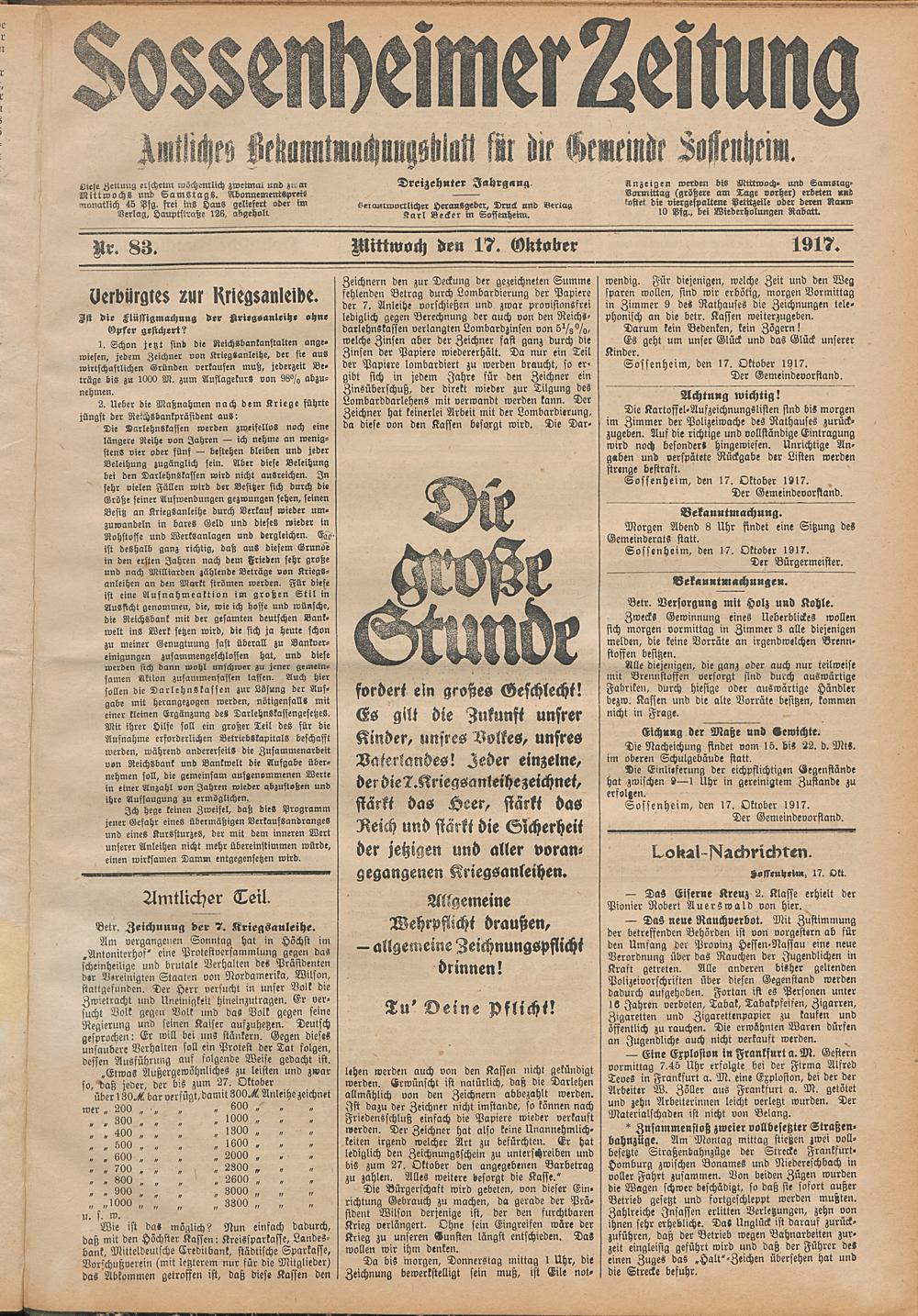 Regionale Zeitungen aus der Zeit des Ersten Weltkrieges