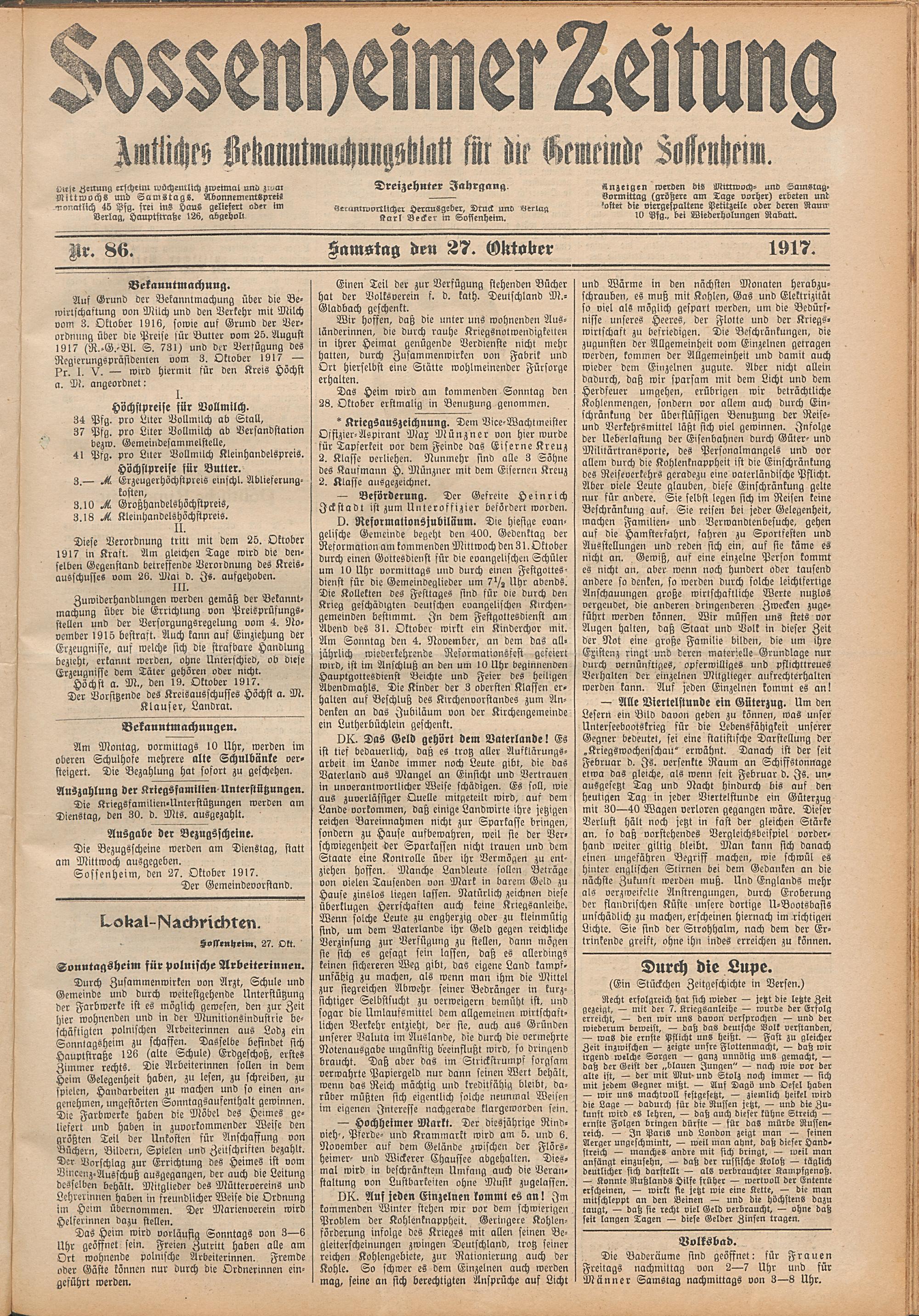 Regionale Zeitungen aus der Zeit des Ersten Weltkrieges