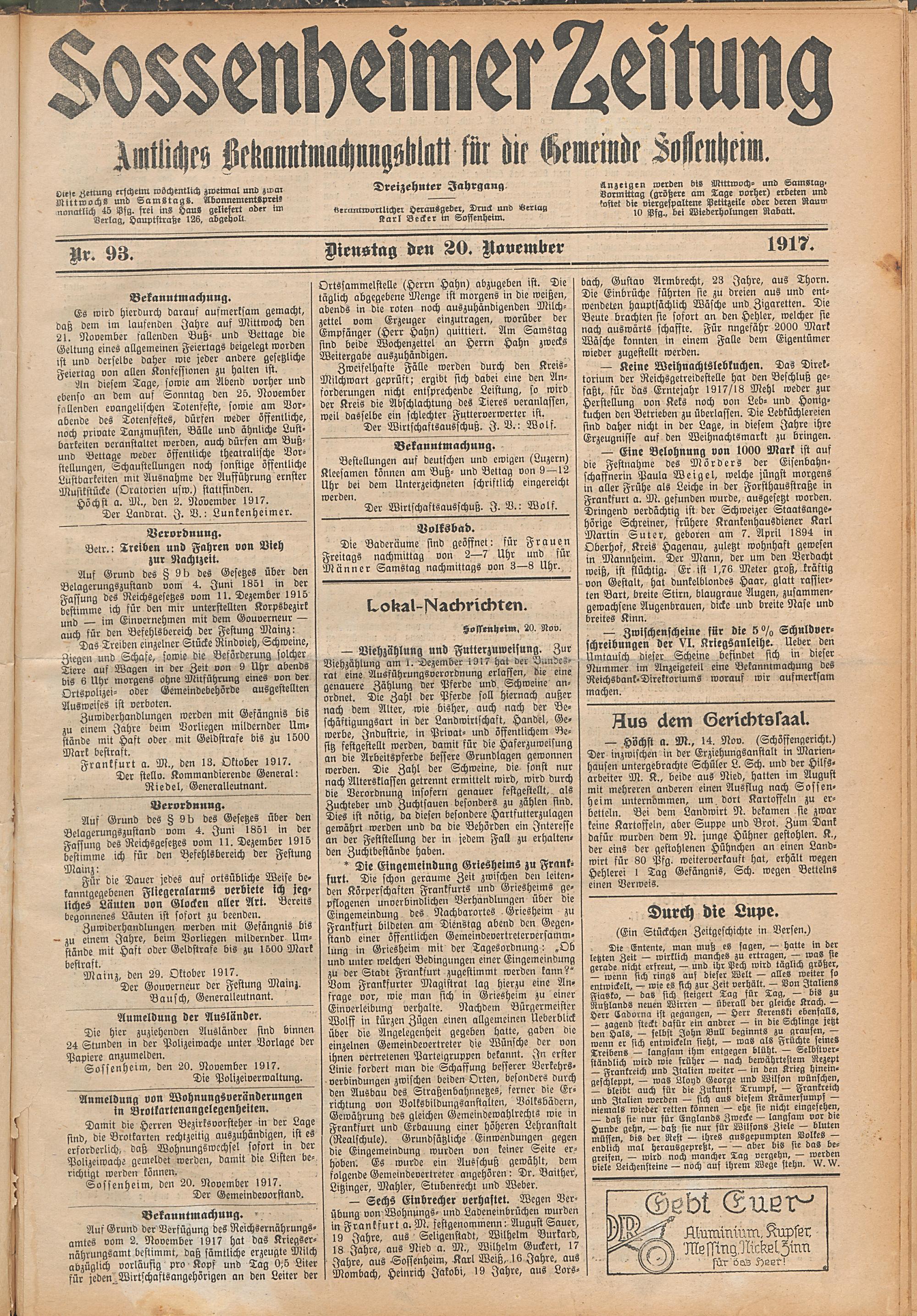 Sossenheimer Zeitung. 1906-1927