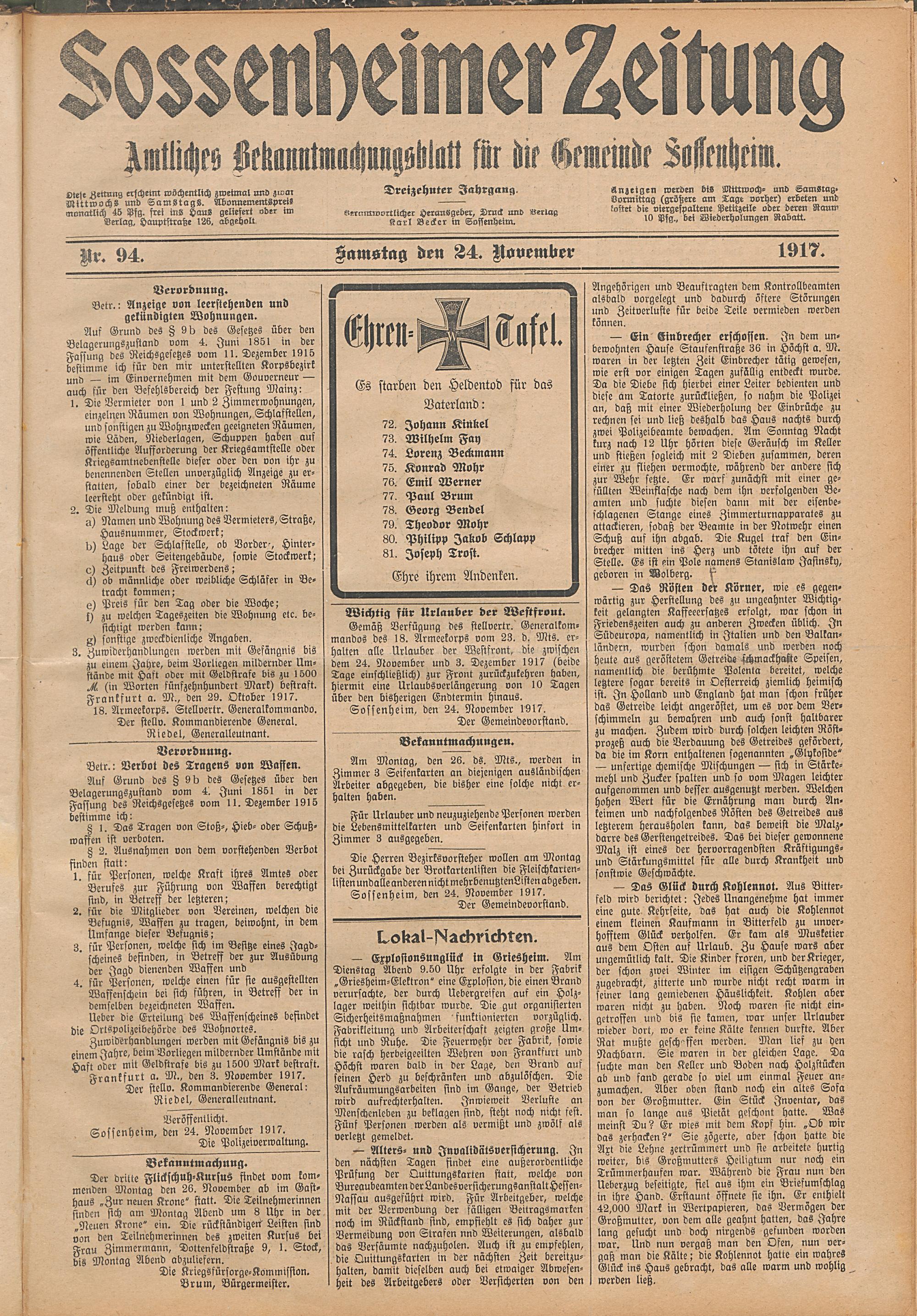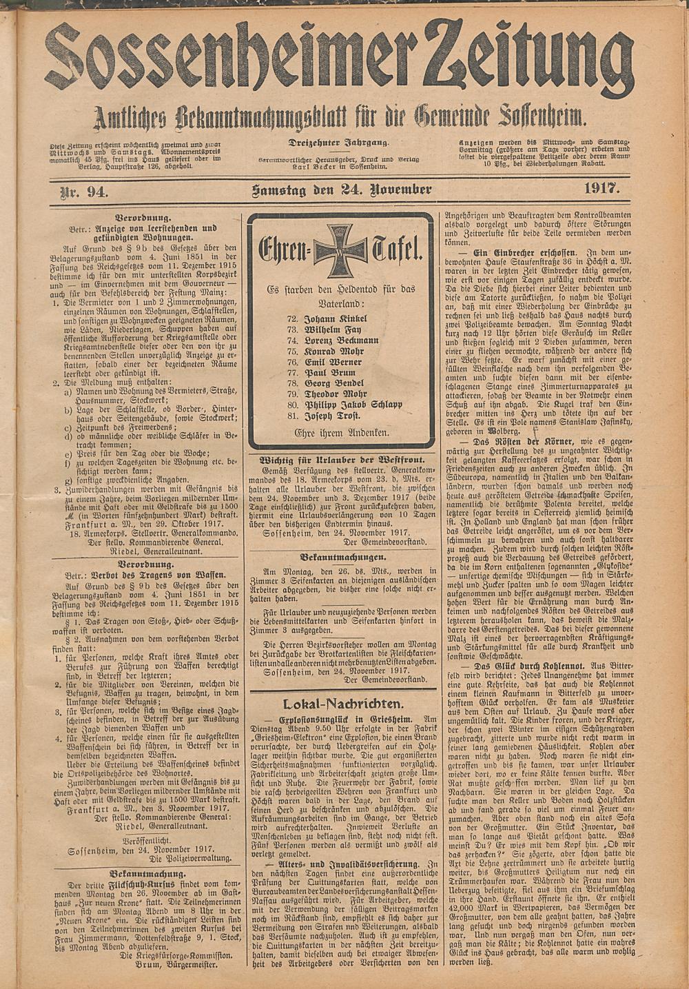 Sossenheimer Zeitung. 1906-1927