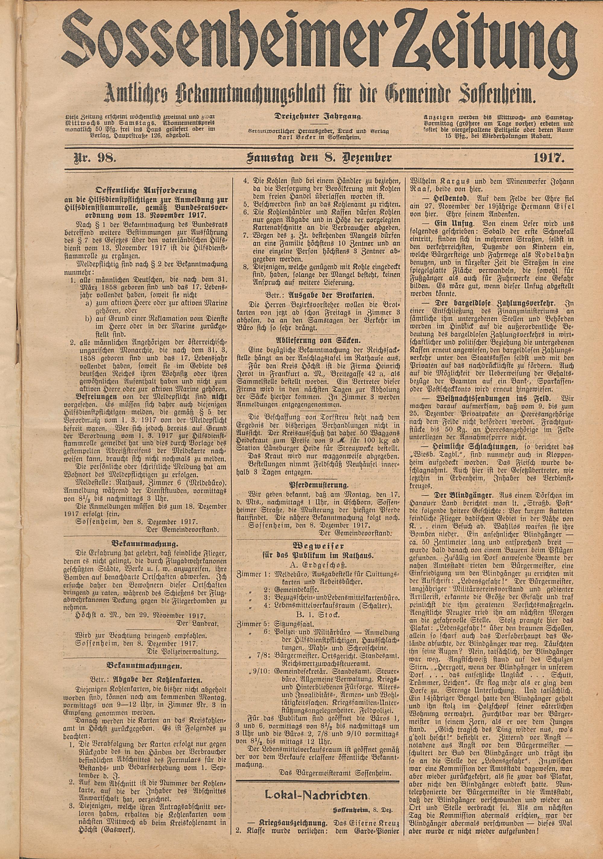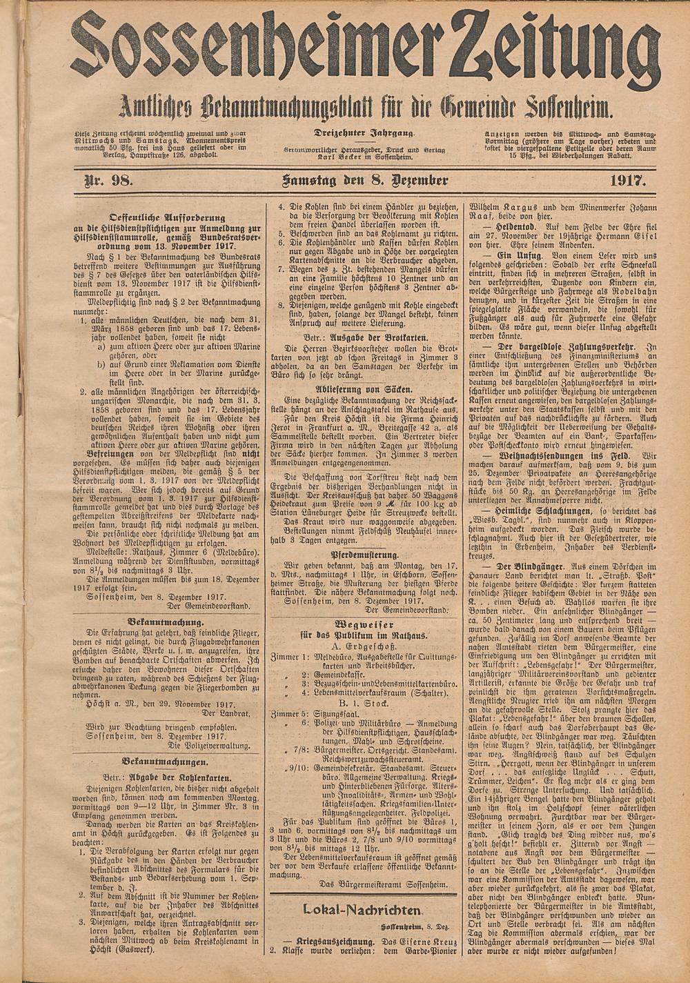 Sossenheimer Zeitung. 1906-1927