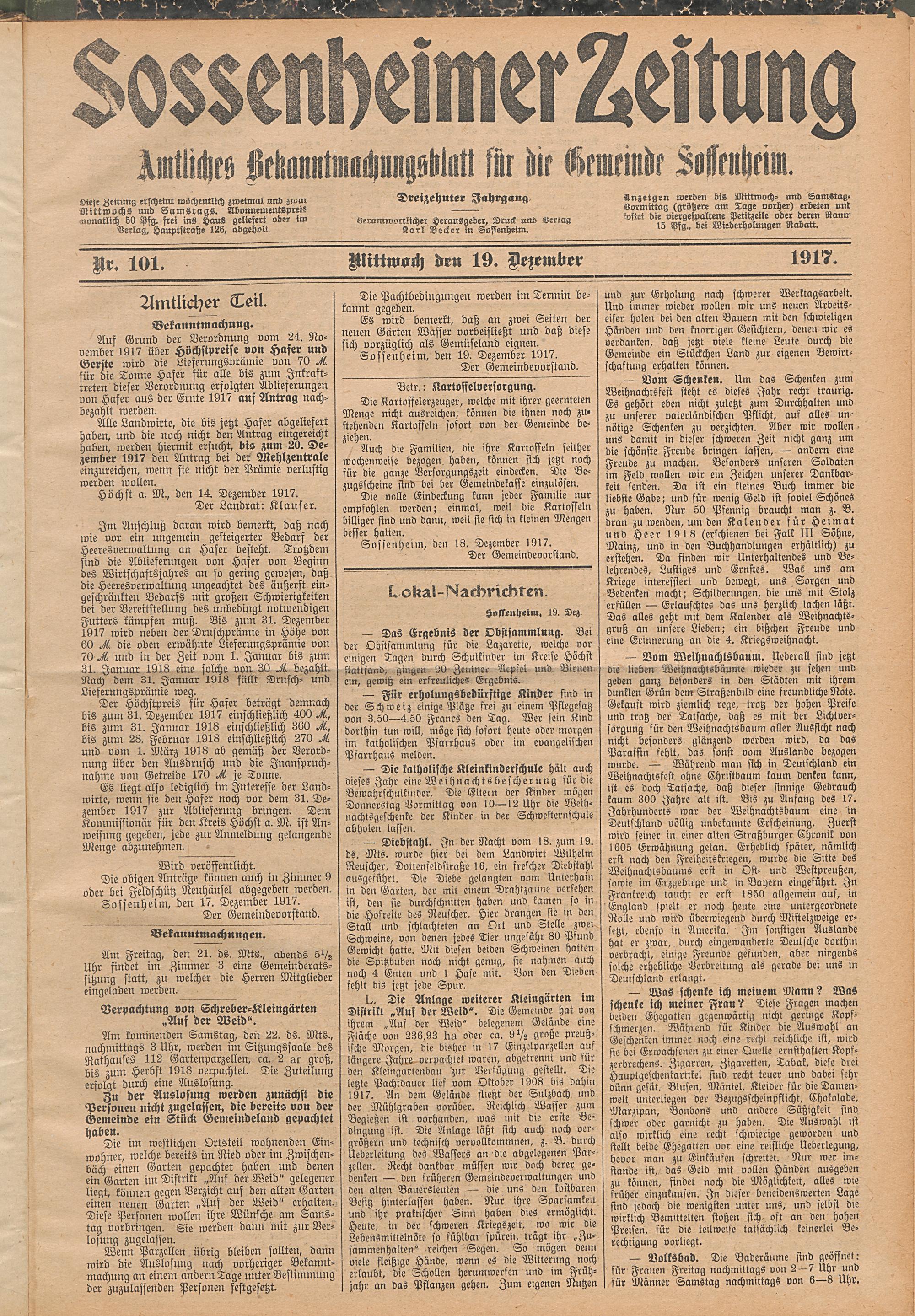Sossenheimer Zeitung. 1906-1927