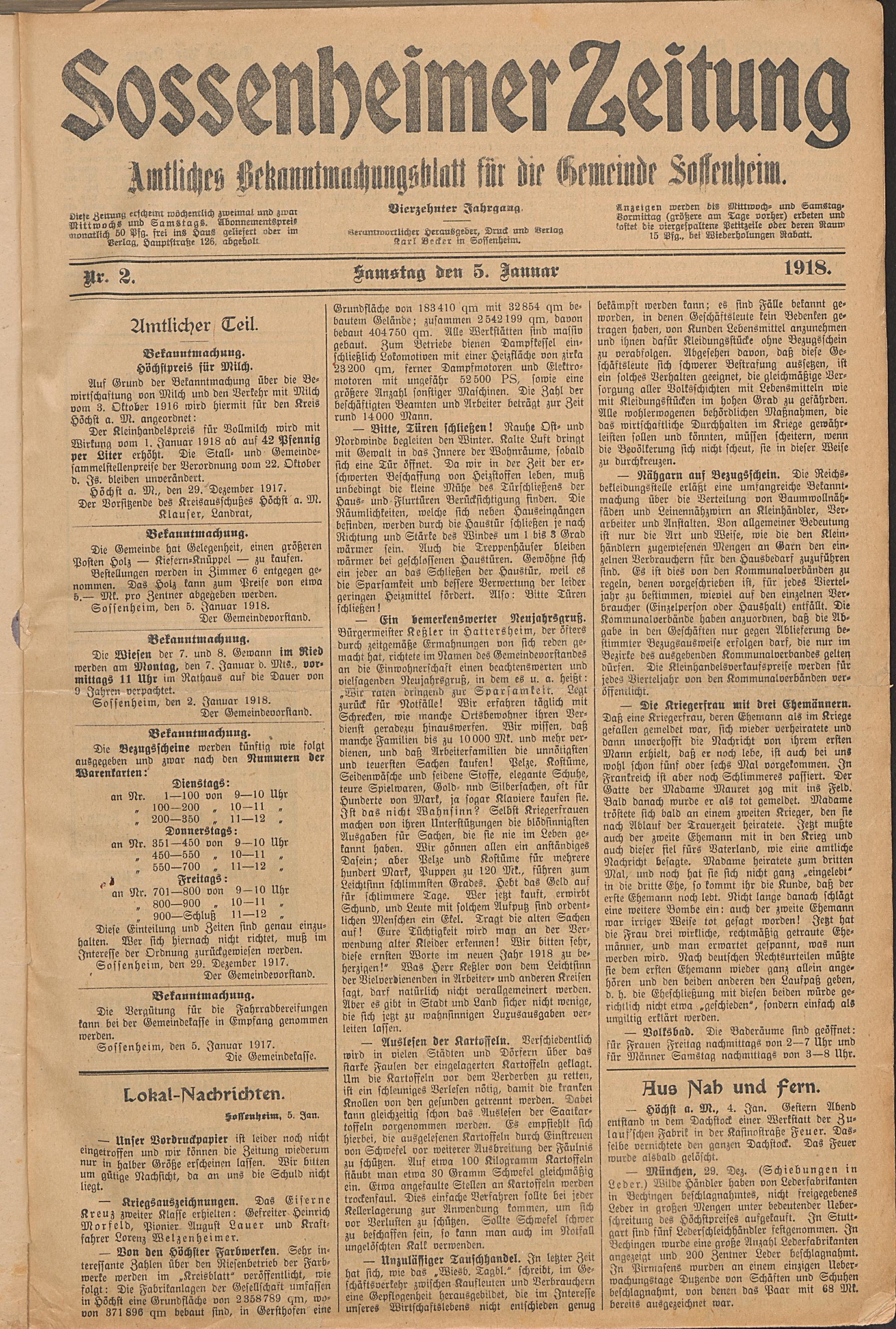 Sossenheimer Zeitung. 1906-1927