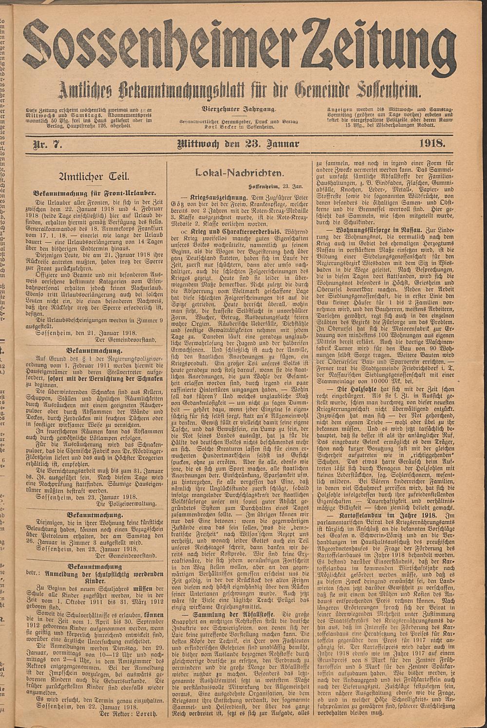 Sossenheimer Zeitung. 1906-1927