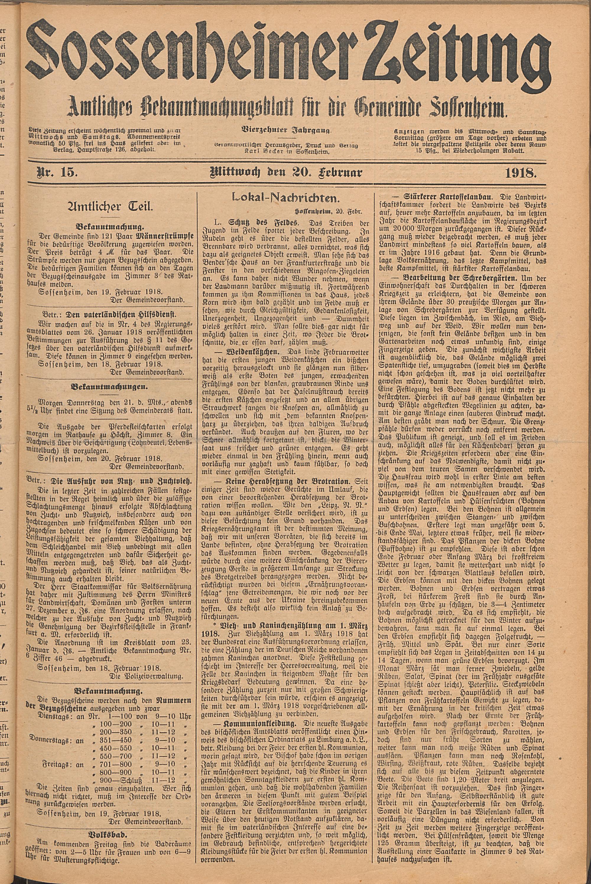 Sossenheimer Zeitung. 1906-1927