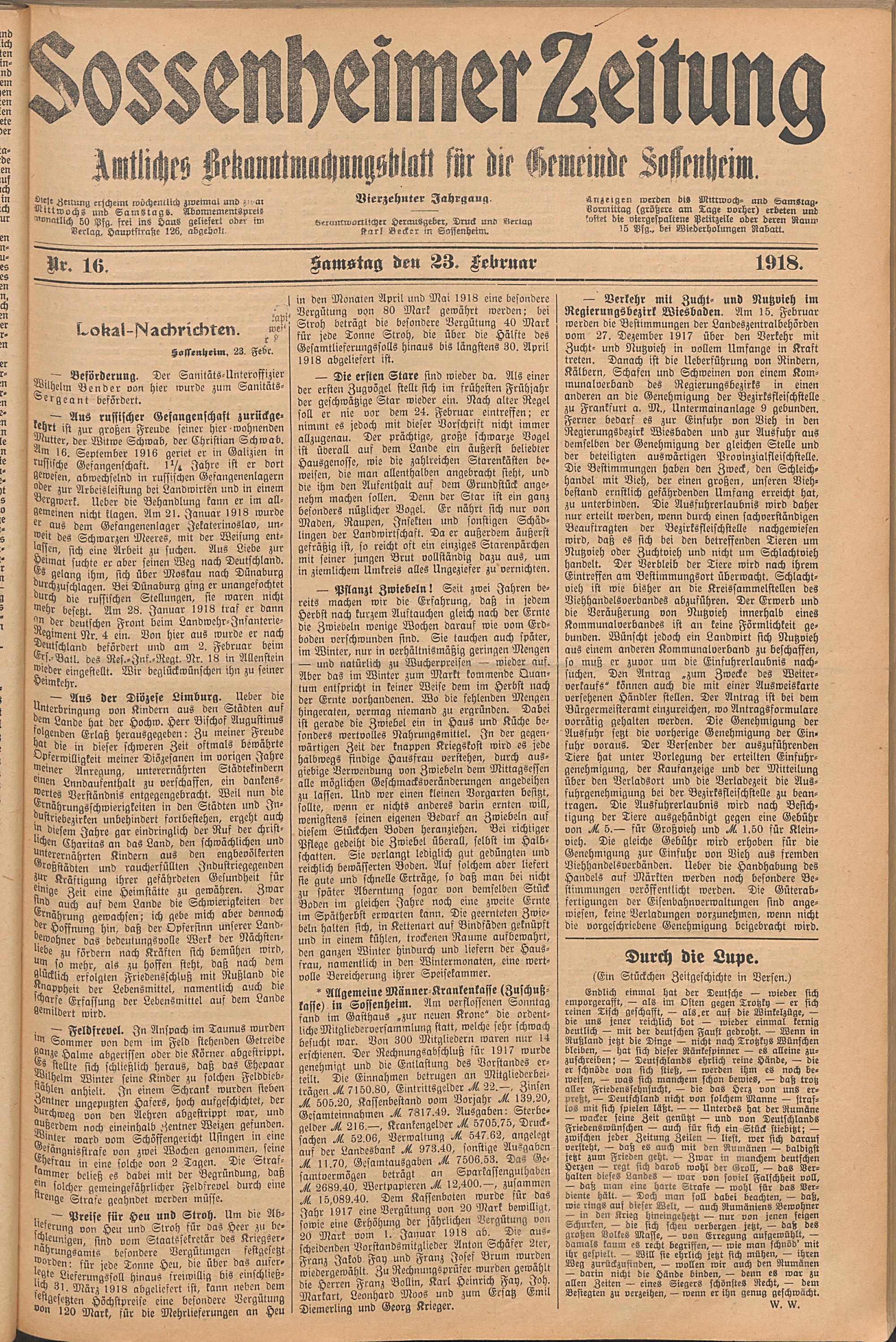 Regionale Zeitungen aus der Zeit des Ersten Weltkrieges