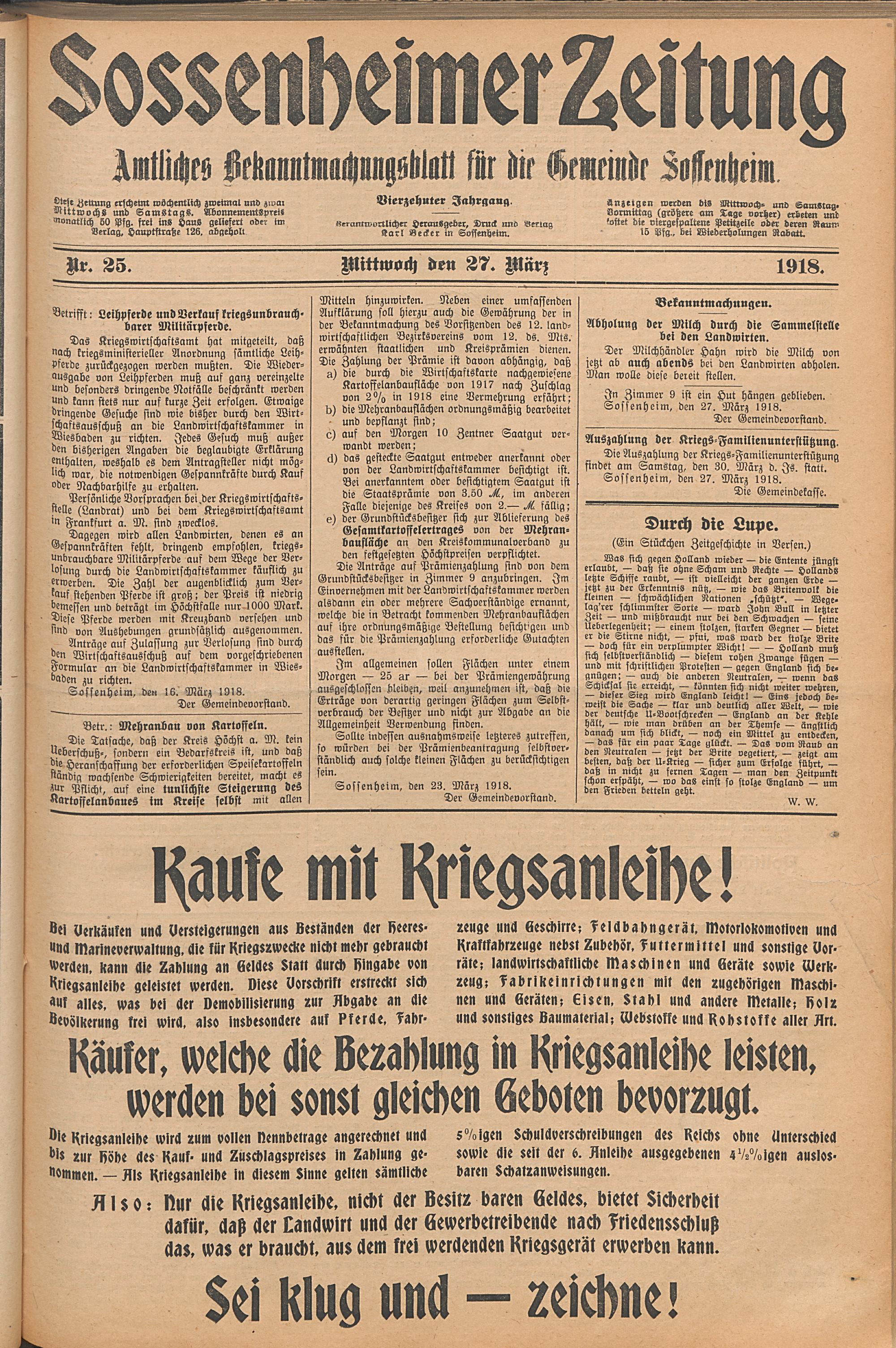 Regionale Zeitungen aus der Zeit des Ersten Weltkrieges