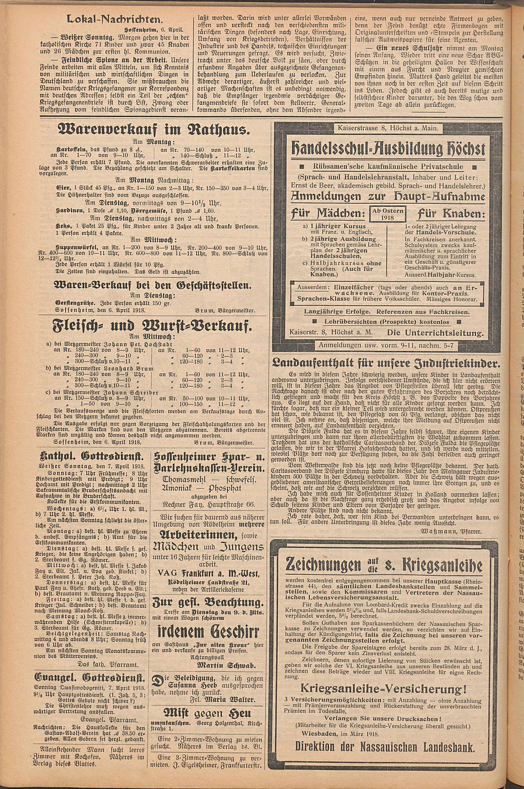 Regionale Zeitungen aus der Zeit des Ersten Weltkrieges