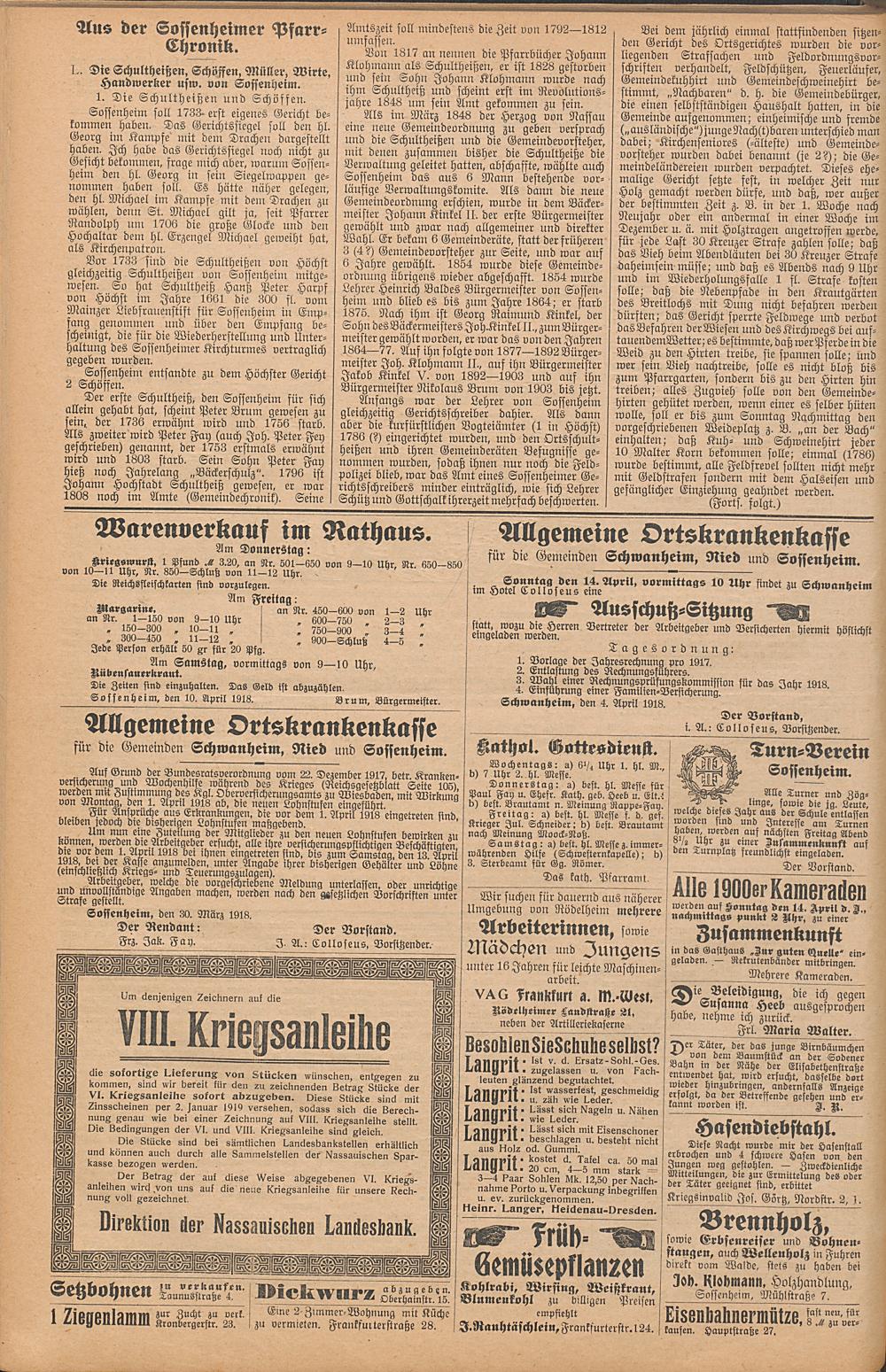 Sossenheimer Zeitung. 1906-1927