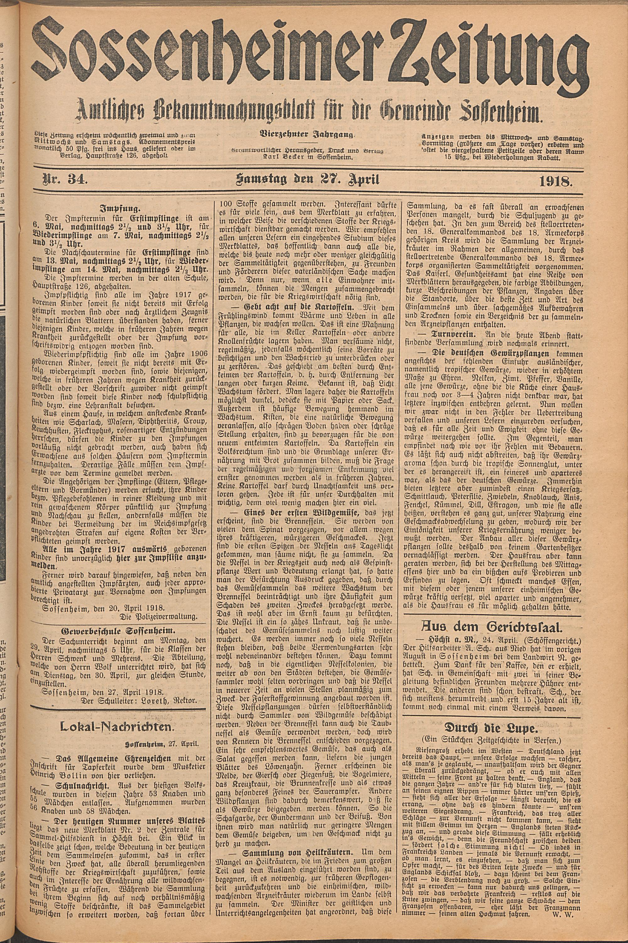 Sossenheimer Zeitung. 1906-1927