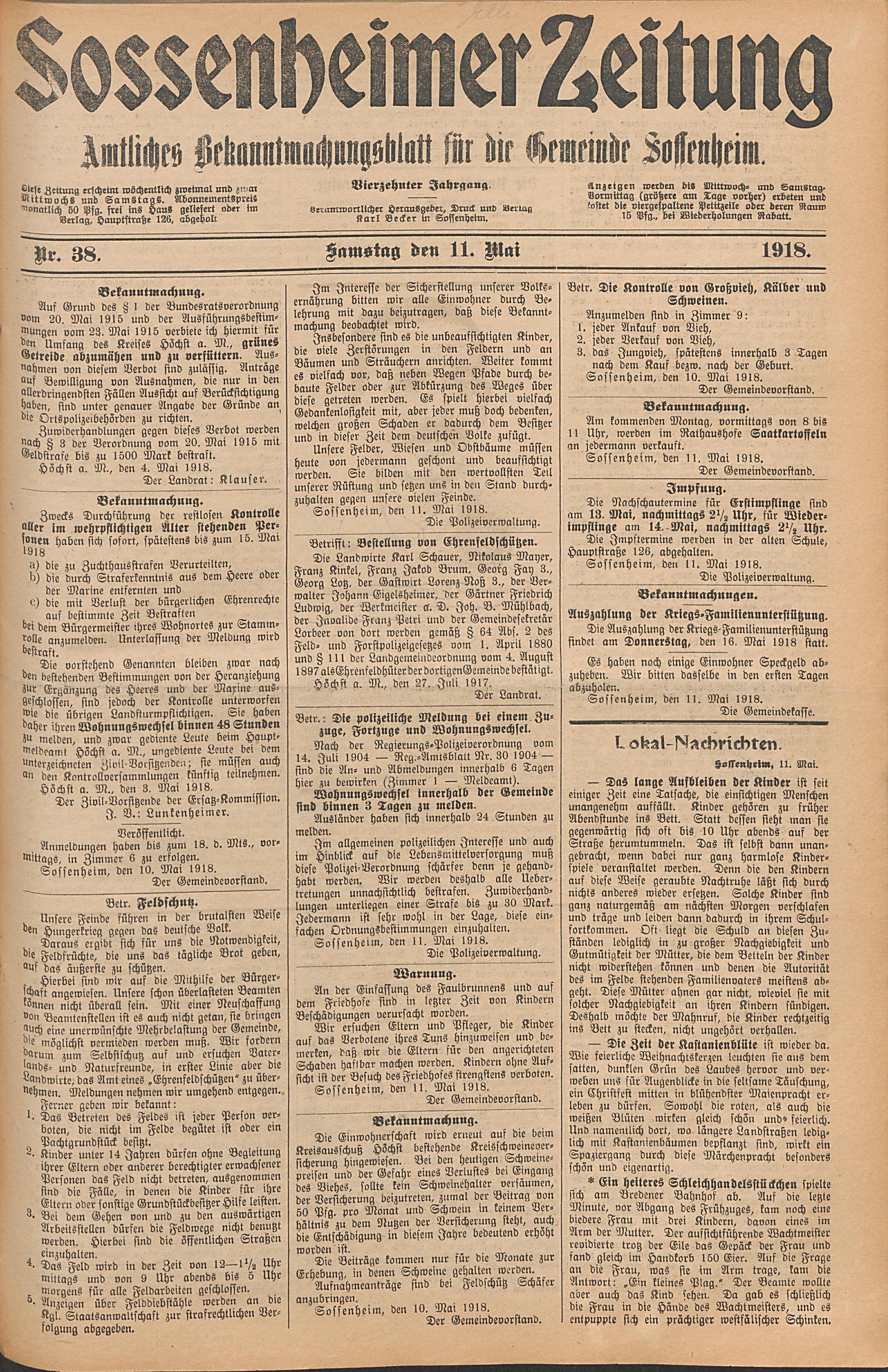 Regionale Zeitungen aus der Zeit des Ersten Weltkrieges