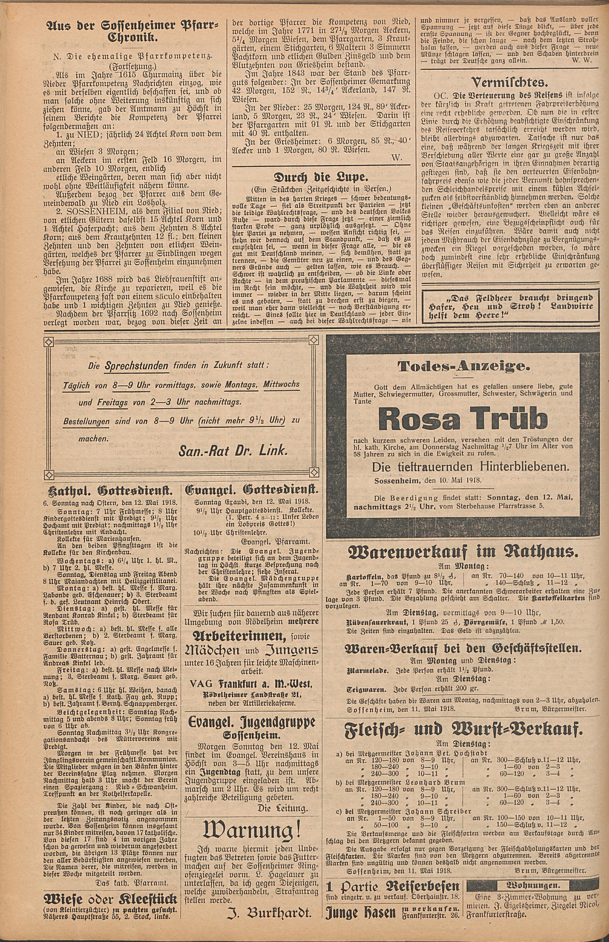 Regionale Zeitungen aus der Zeit des Ersten Weltkrieges
