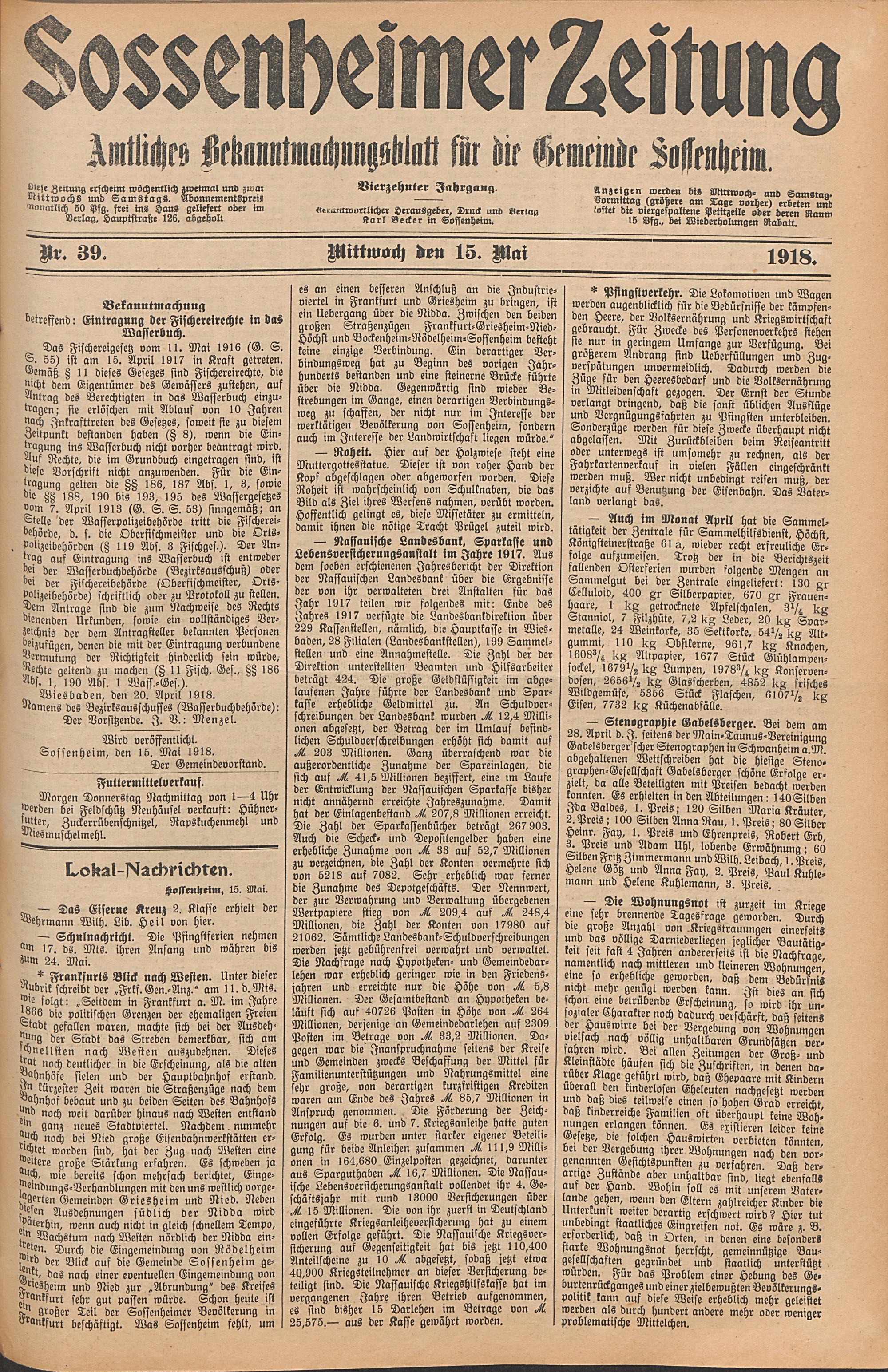 Sossenheimer Zeitung. 1906-1927