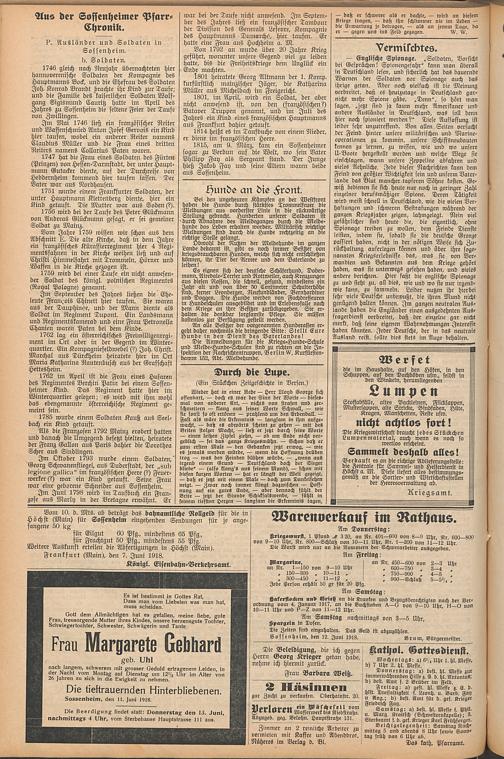 Regionale Zeitungen aus der Zeit des Ersten Weltkrieges