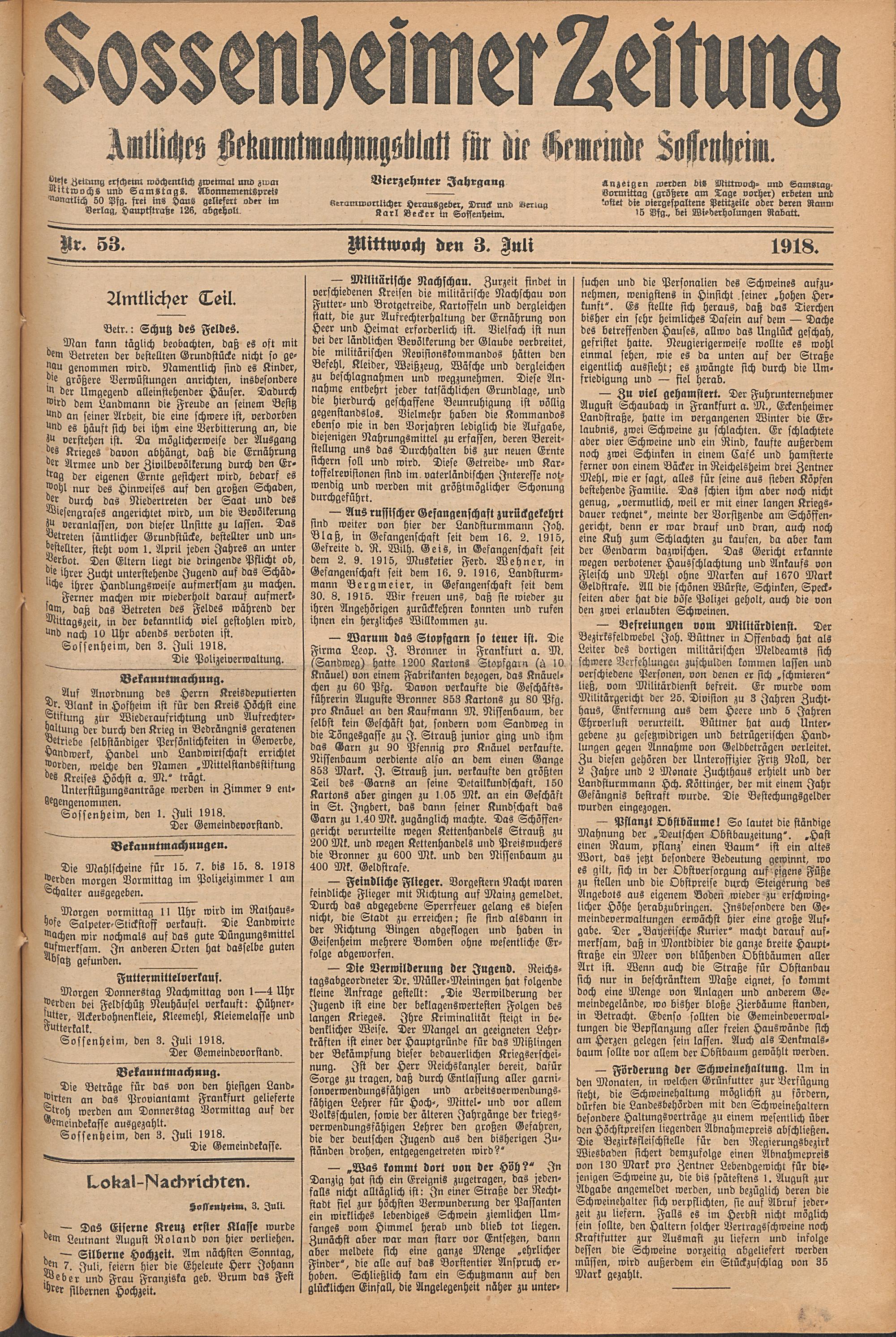 Sossenheimer Zeitung. 1906-1927
