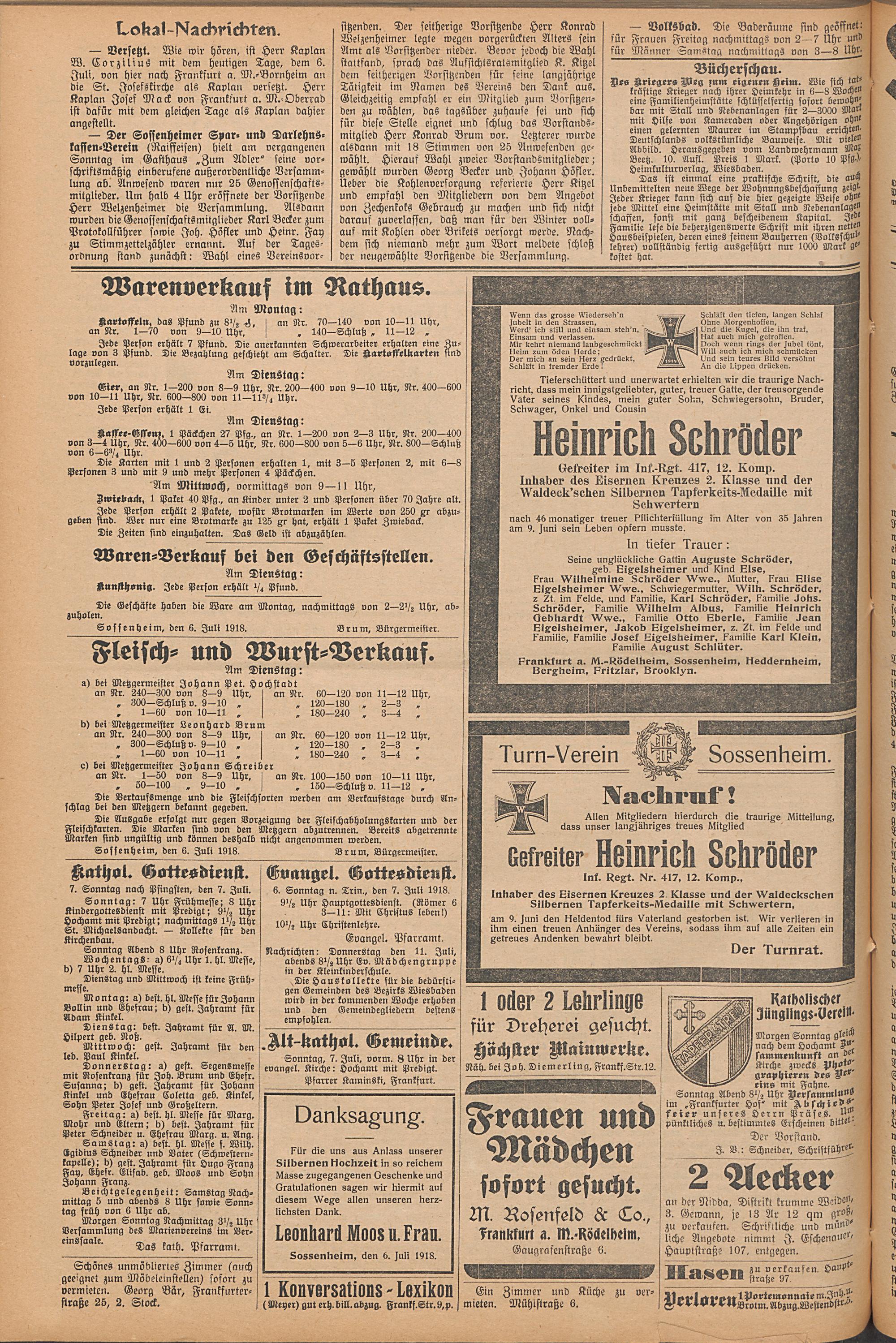 Regionale Zeitungen aus der Zeit des Ersten Weltkrieges
