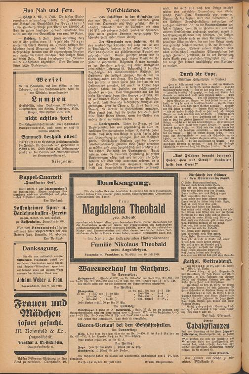 Regionale Zeitungen aus der Zeit des Ersten Weltkrieges