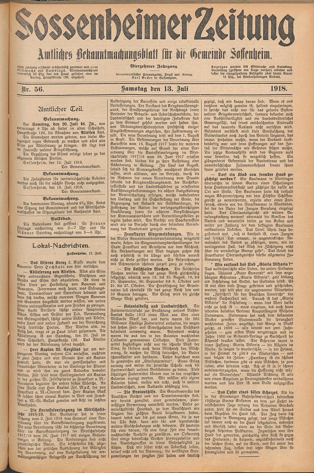 Sossenheimer Zeitung. 1906-1927