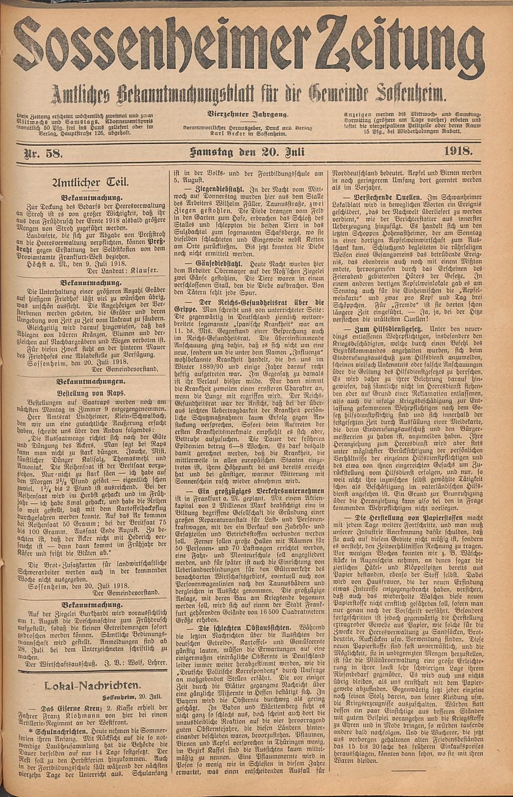 Sossenheimer Zeitung. 1906-1927