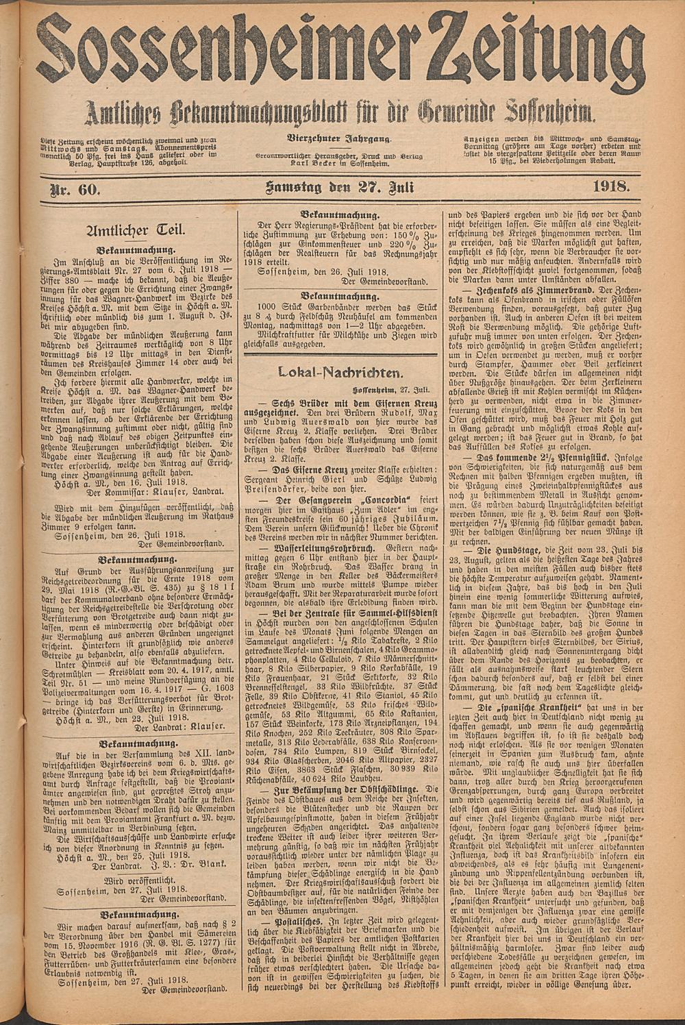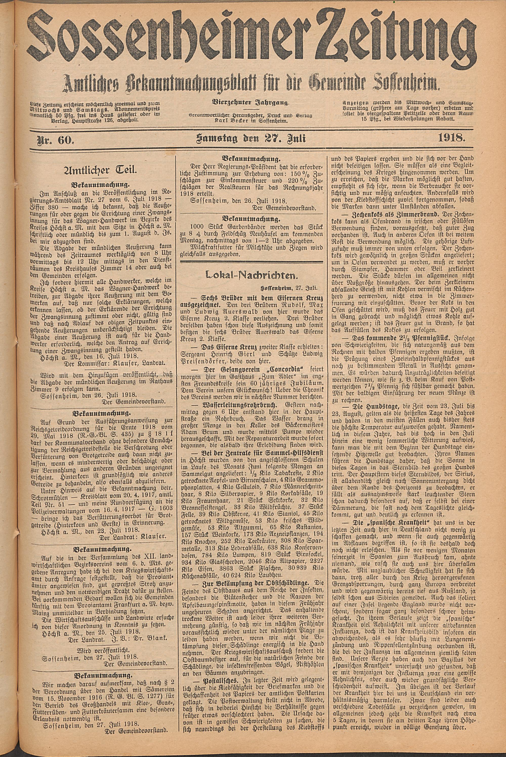 Sossenheimer Zeitung. 1906-1927
