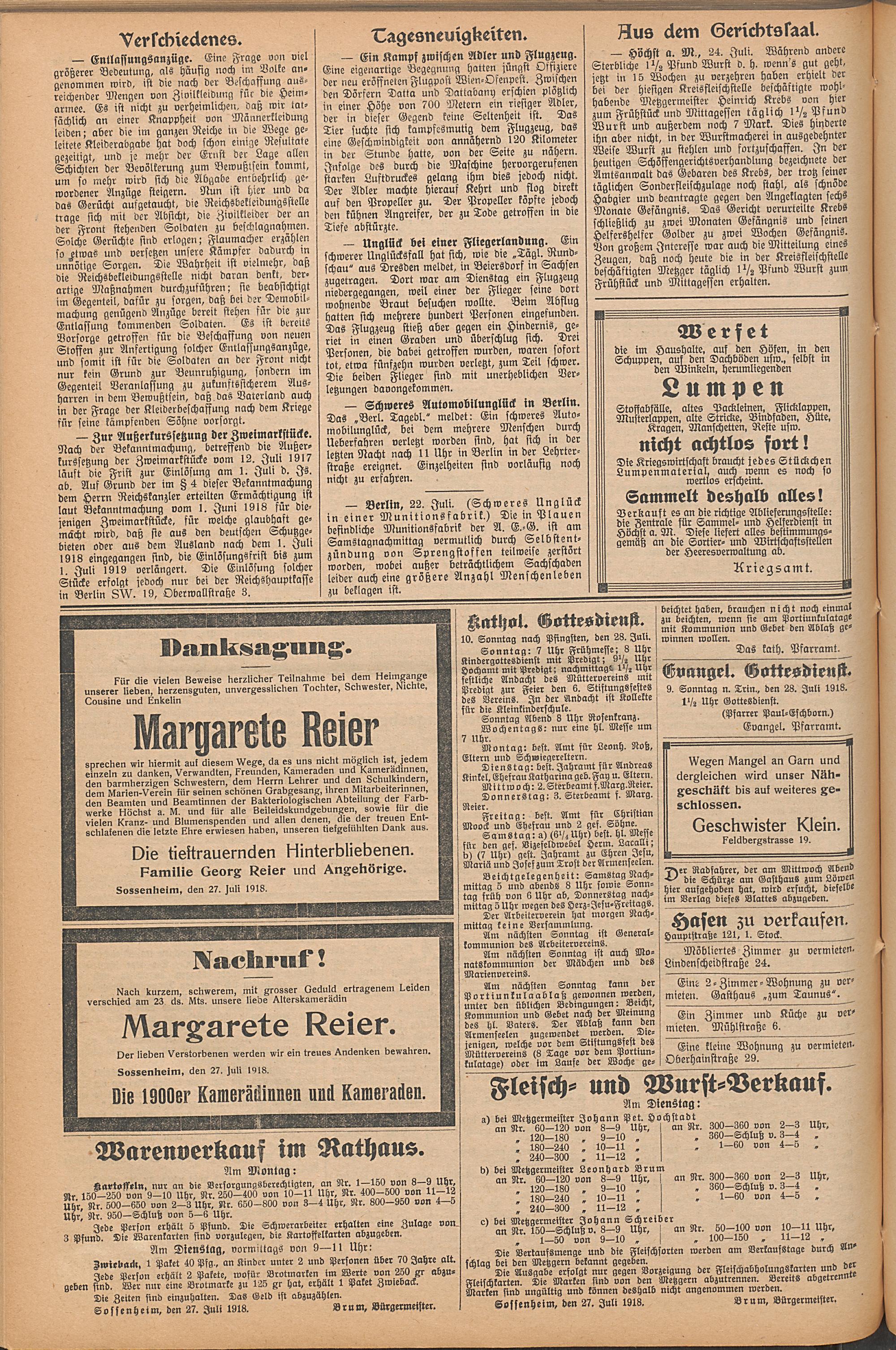Regionale Zeitungen aus der Zeit des Ersten Weltkrieges
